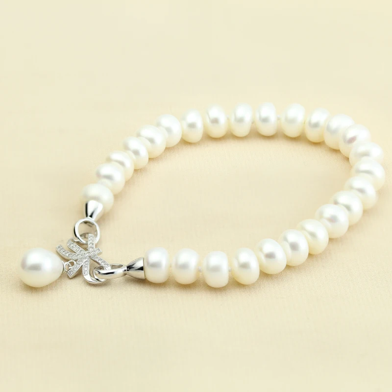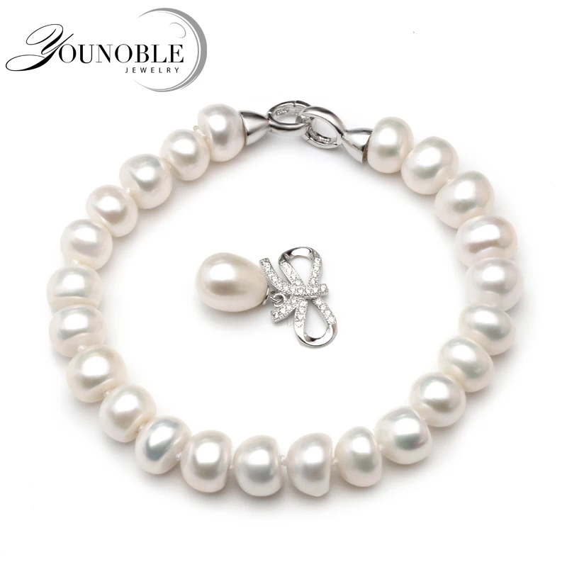 Wedding Pearl Bracelet for Women,Real Natural Pearl Bracelets 925 Silver jewelry Girl Best Gift Birthd Top Quality