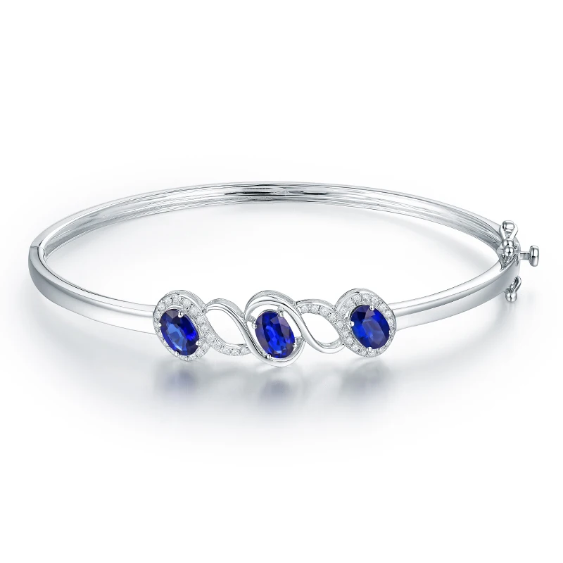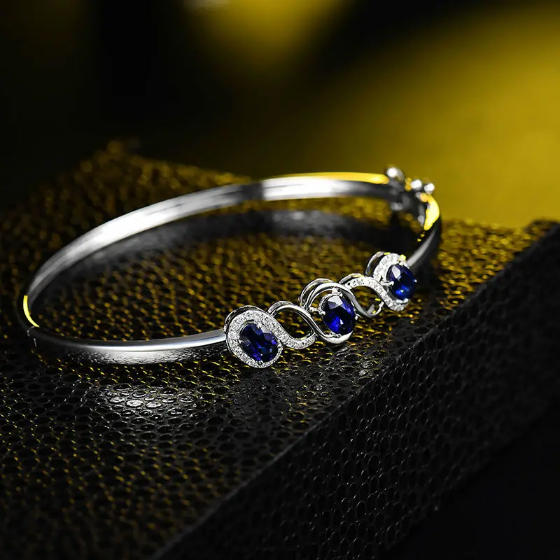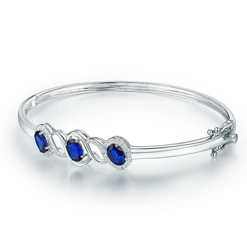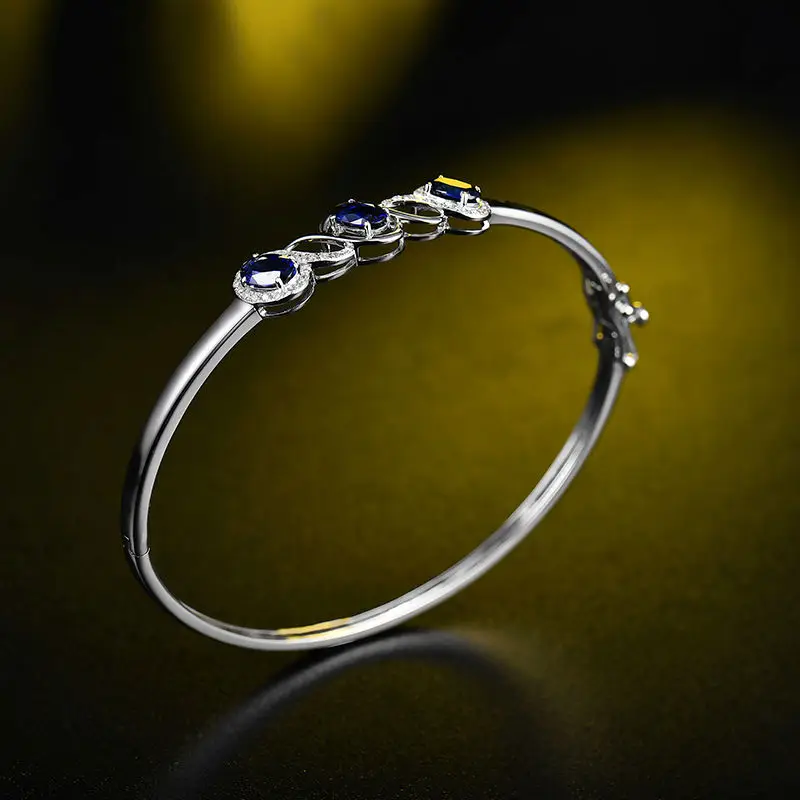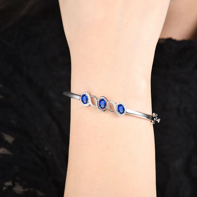 Wholesale Natural Blue Sapphire Wedding Bracelet Design Solid 18K White Gold Promised Diamond Genuine Gemstone Fine Jewelry