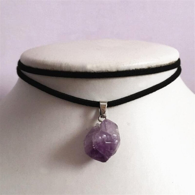 Witch Purple Stone Choker Crystal Pendant Suede Lilac Black Witcher Wedding Punk Gorgeous Jewelry Women Gift Necklace