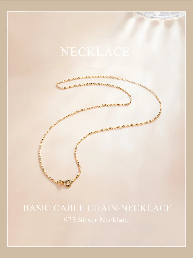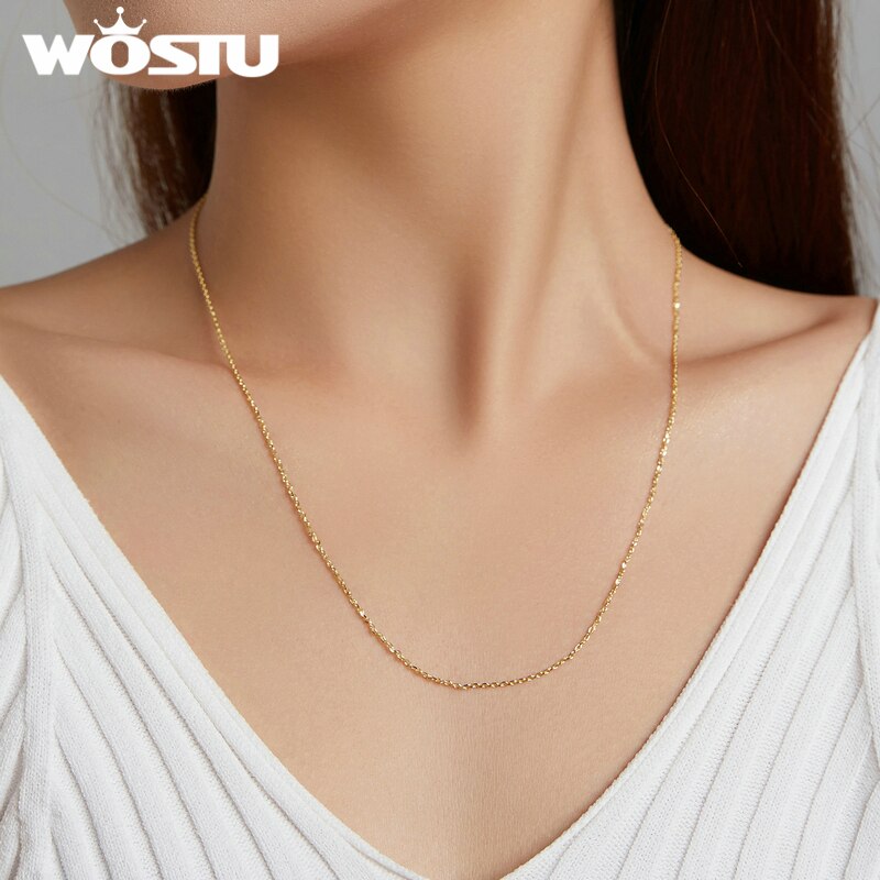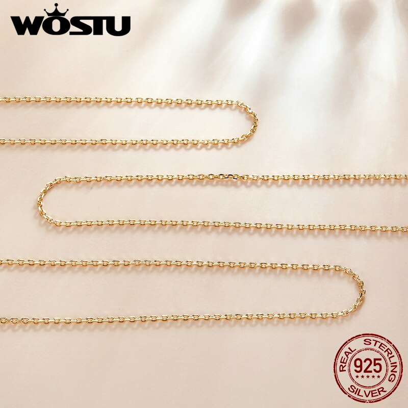 WOSTU Authentic 925 Sterling Silver Plated Gold Simple Chain Necklace Women Wedding Party Fine Jewelry Gift Making