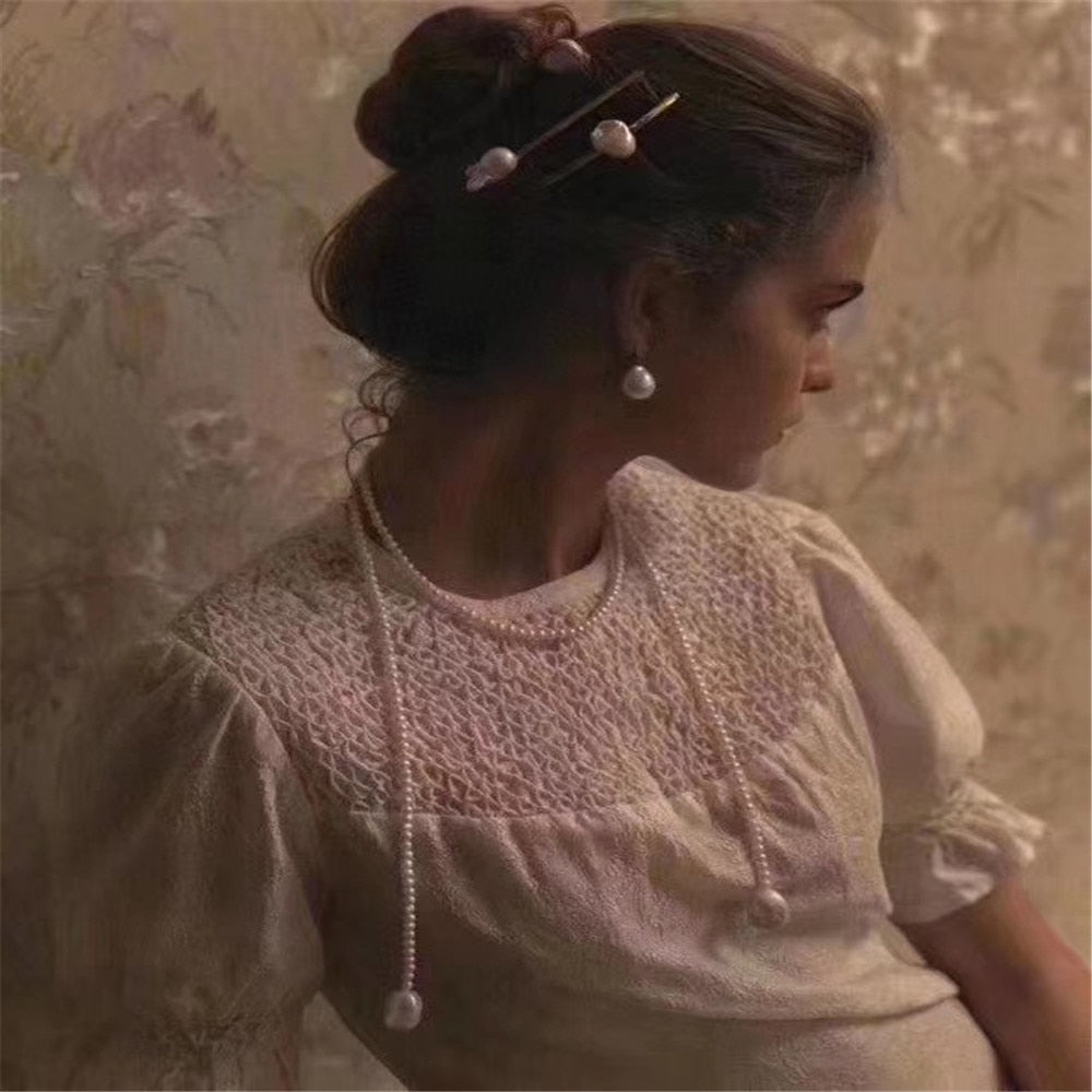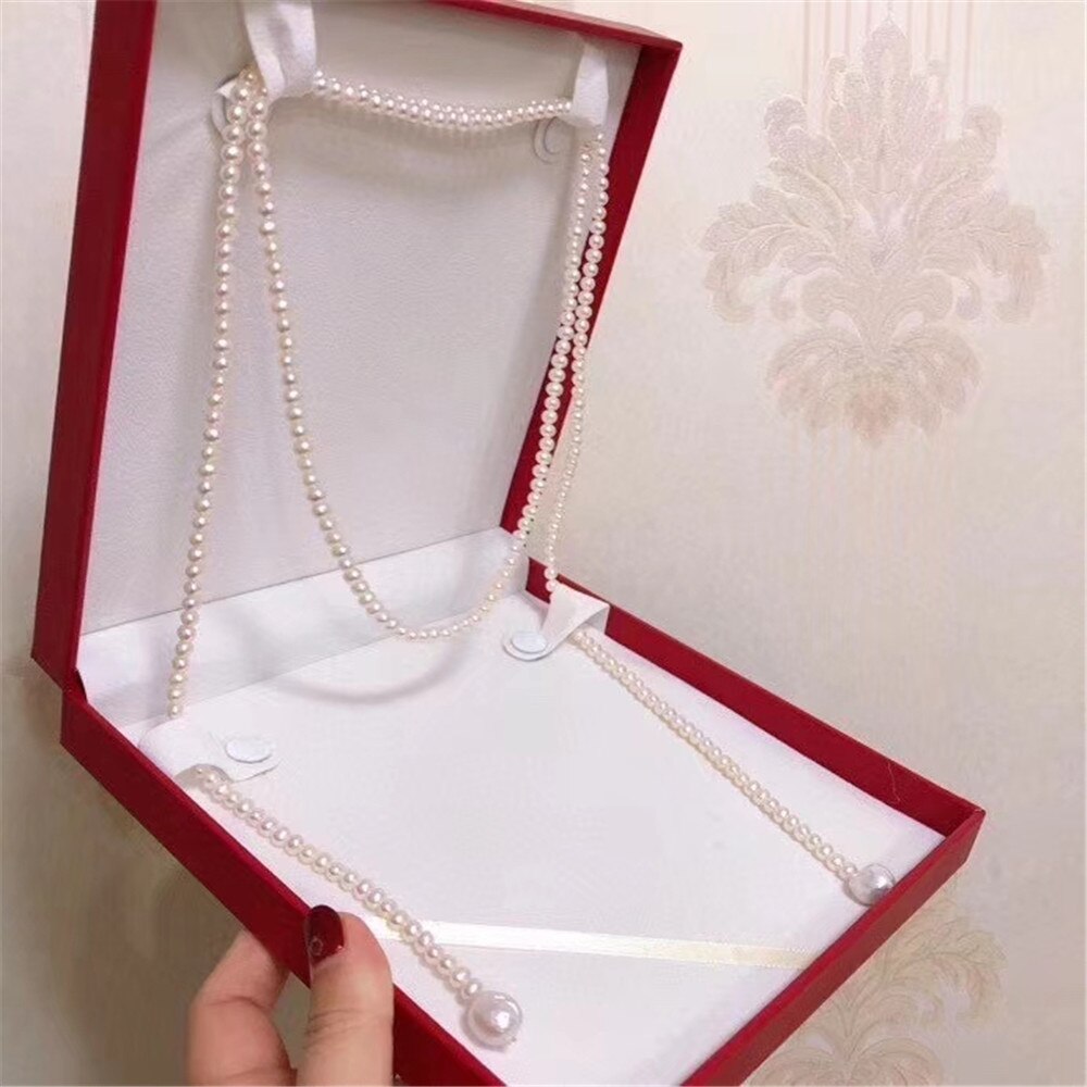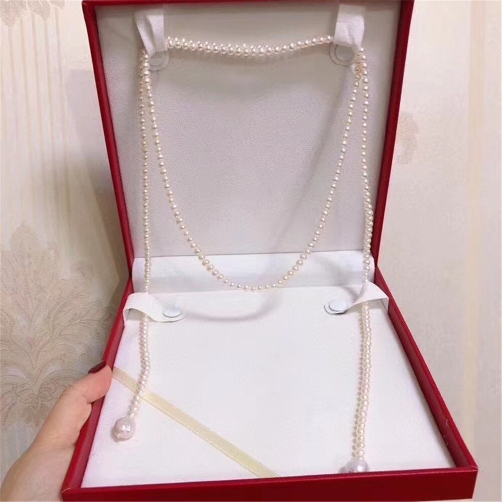YKNRBPH Women's Long Pearl Necklace High quatlity Bride Weddings Round Fine Jewelry Chain Silver 925 Jewelry