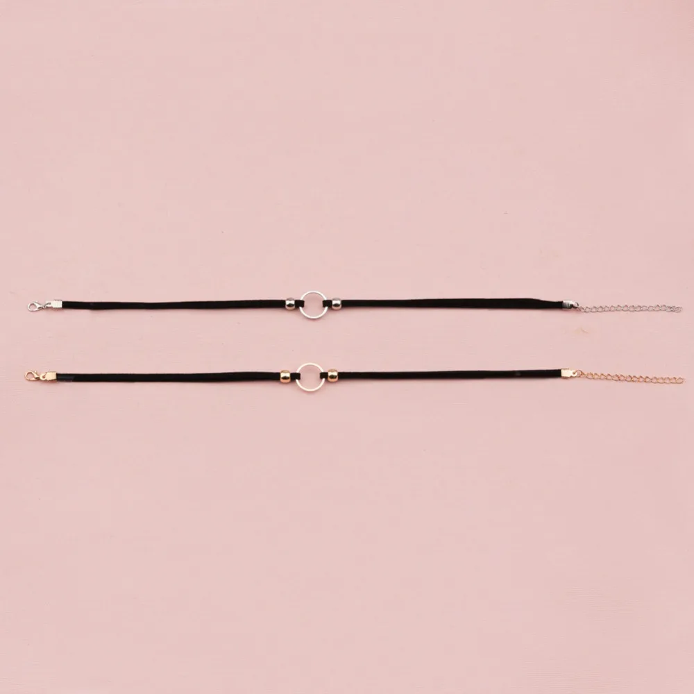 1 Piece Cool Simple Black Color Velvet Choker Necklace Set Satin Gold Color Metal Round Adjustable Size Women Jewelry