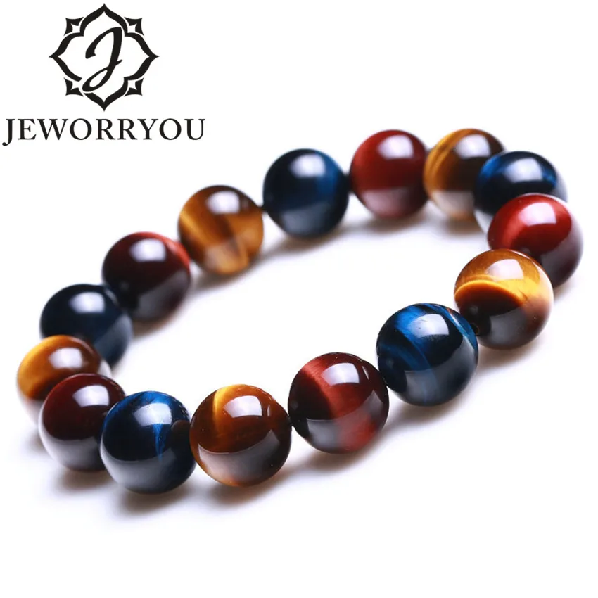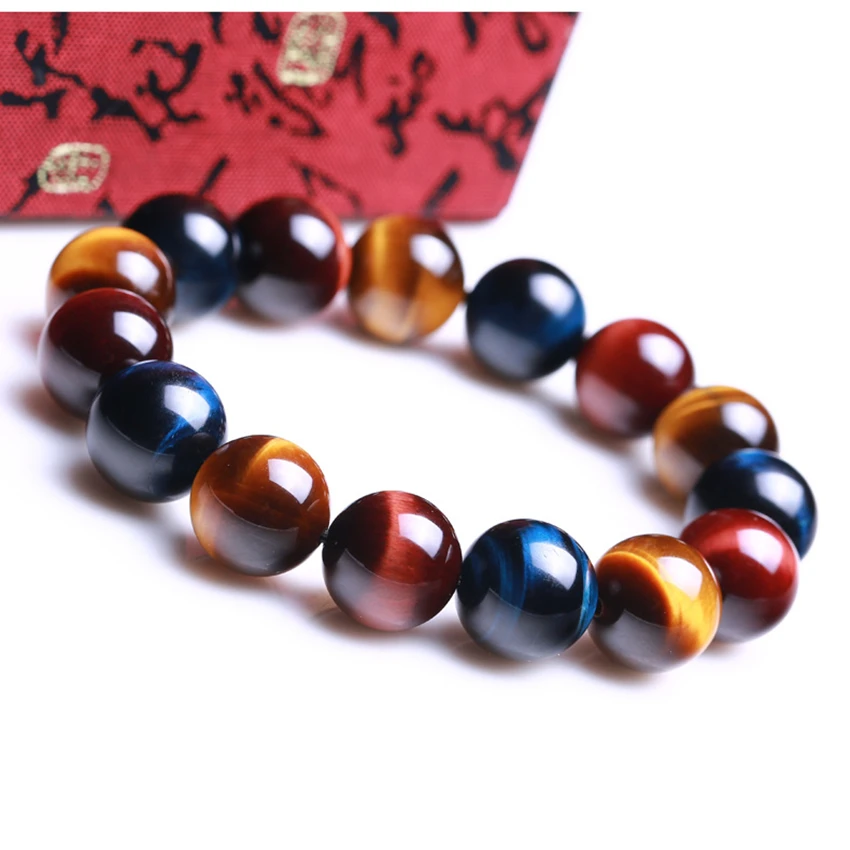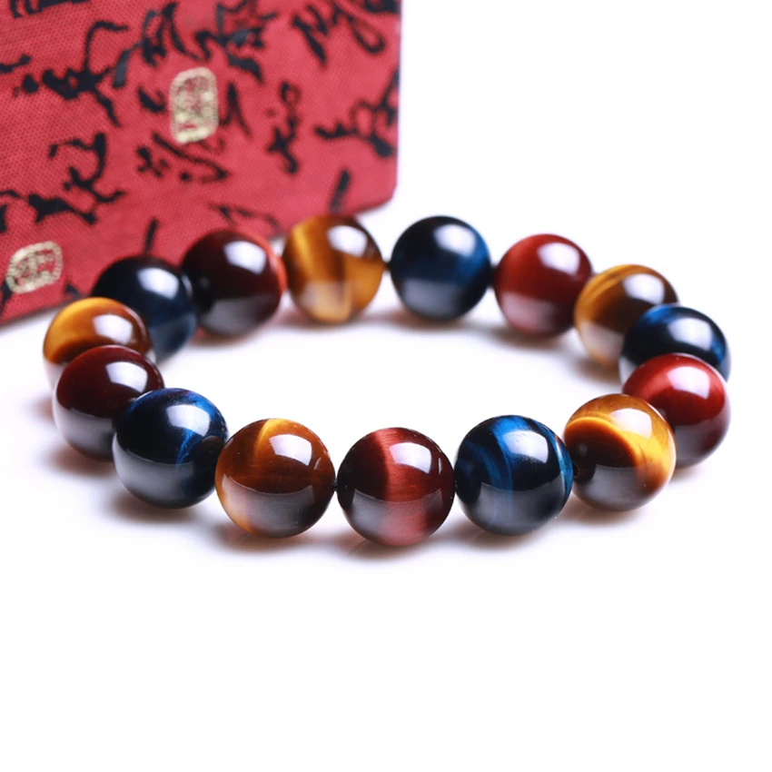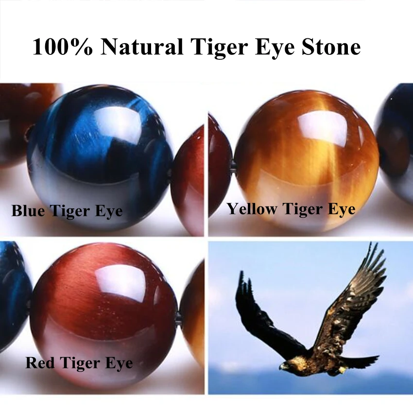 10/12mm Men Tiger's Eye Bead Bracelet Man Gifts 100% Natural Stone Bracelet Blue Red Beads Buddha 3 Colors Tiger Eye Bracelet