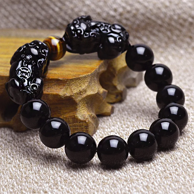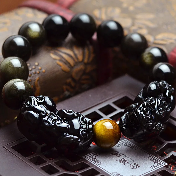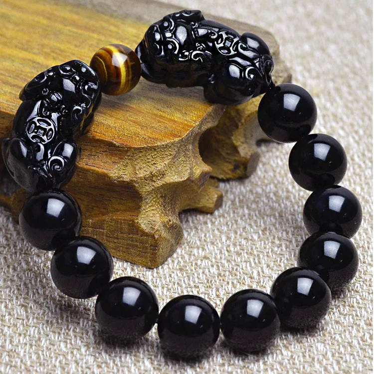 10-14mm Natural Obsidian Beads Bracelet Fine GemStone Beaded Wild Animal Bracelet Men Jewelry Women Bracelet Can Drop Shipping
