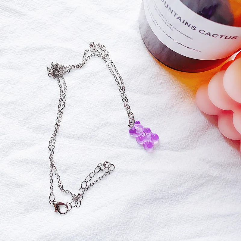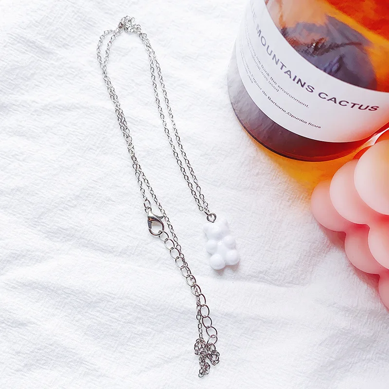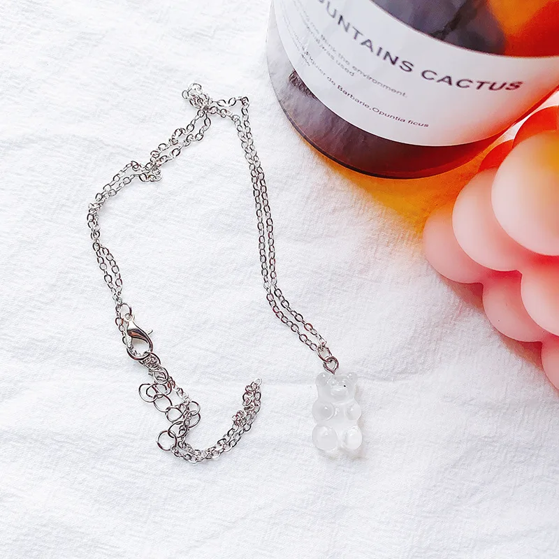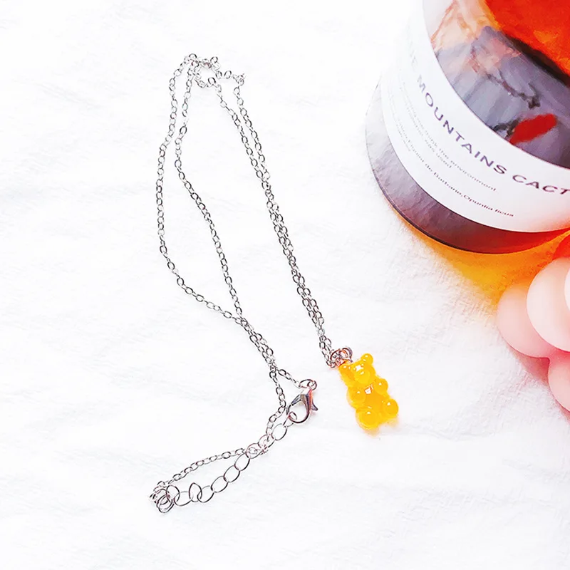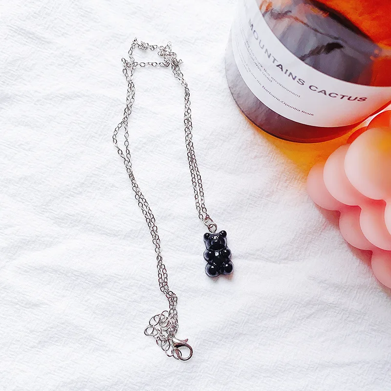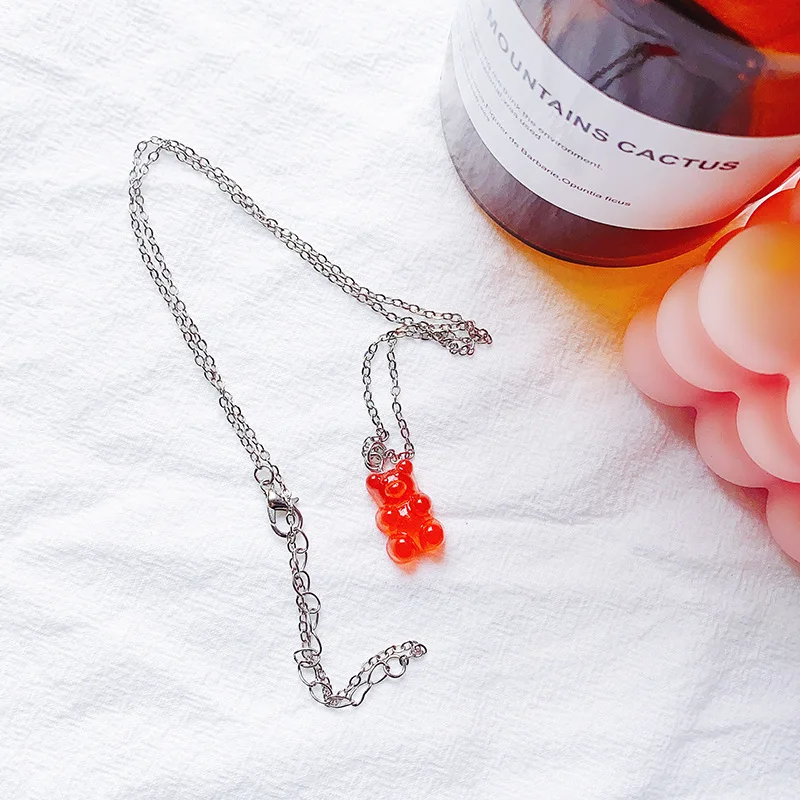 10 Colors Cute Resin Gummy Bear Chain Necklaces Candy Color Pendant For Women Girl's Charm Daily Handmade Jewelry Party Gifts