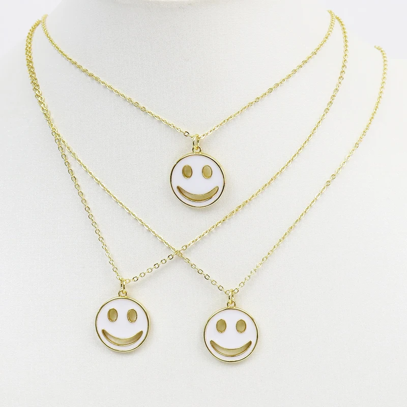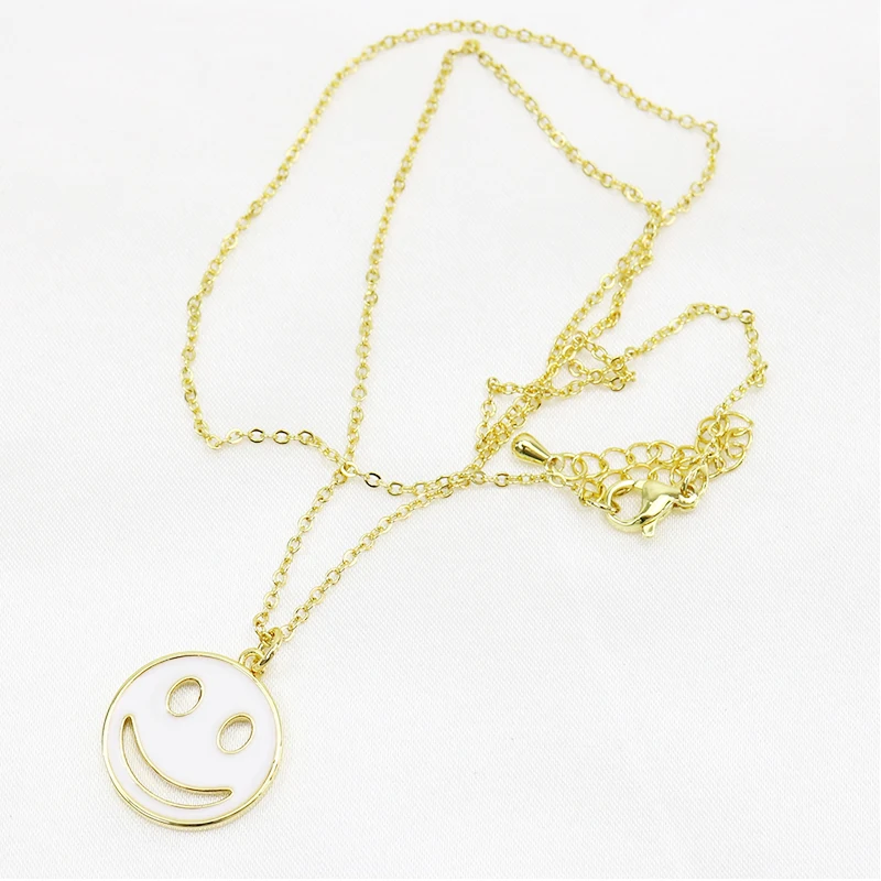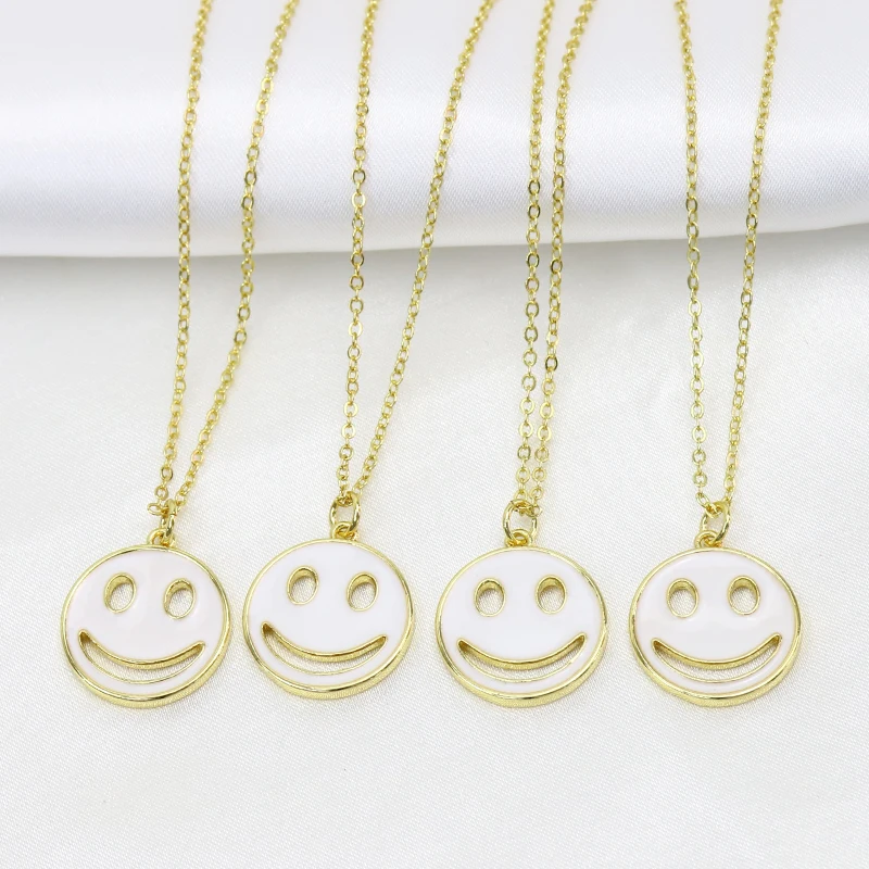 10 Pcs Enamel White Smile face pendant necklace jewelry chain jewelry necklace 52022