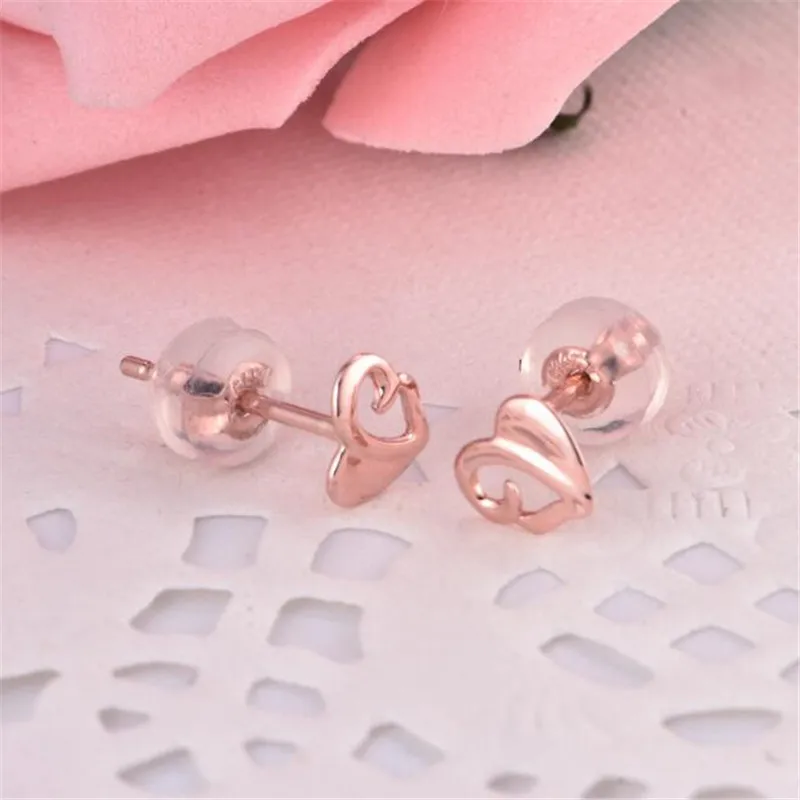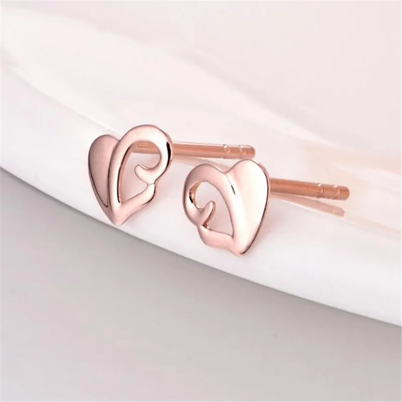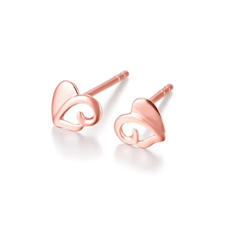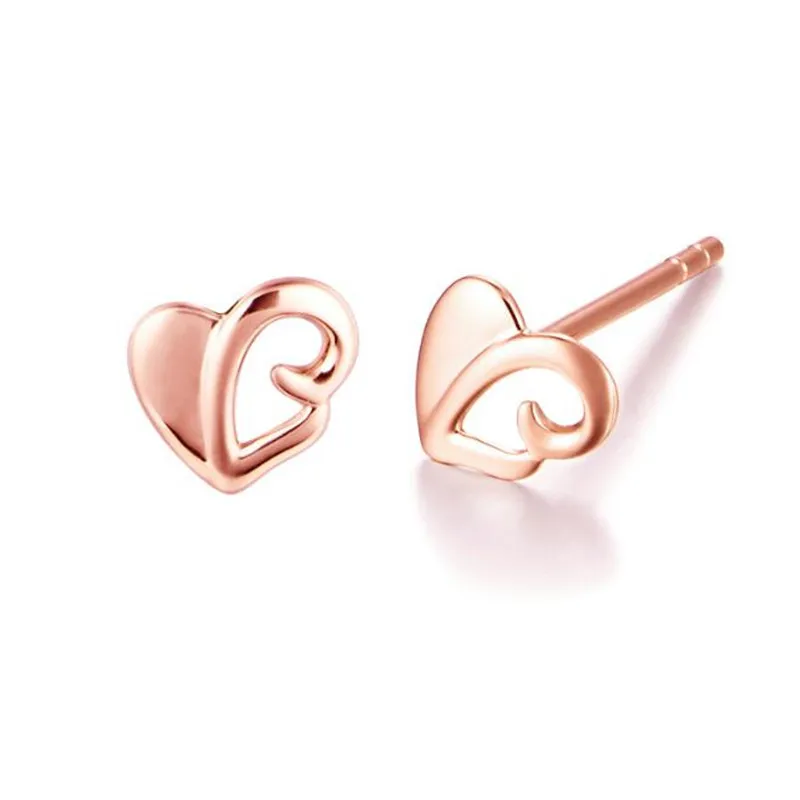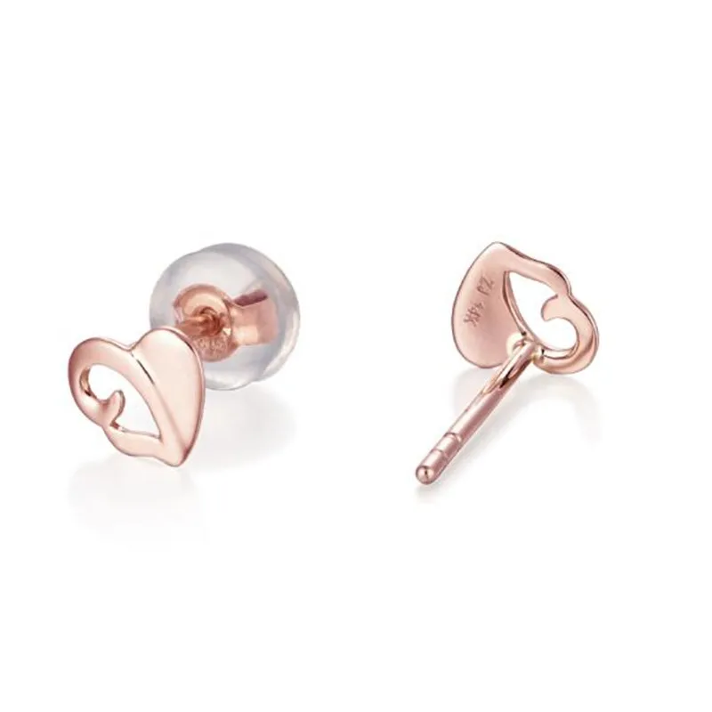 100% 18K Gold Jewelry Fashion Cute Tiny 5.55mmX5.85mm Hollow Heart Stud Earrings For Women Girls Kids Lady AU750 Jewelry Gifts