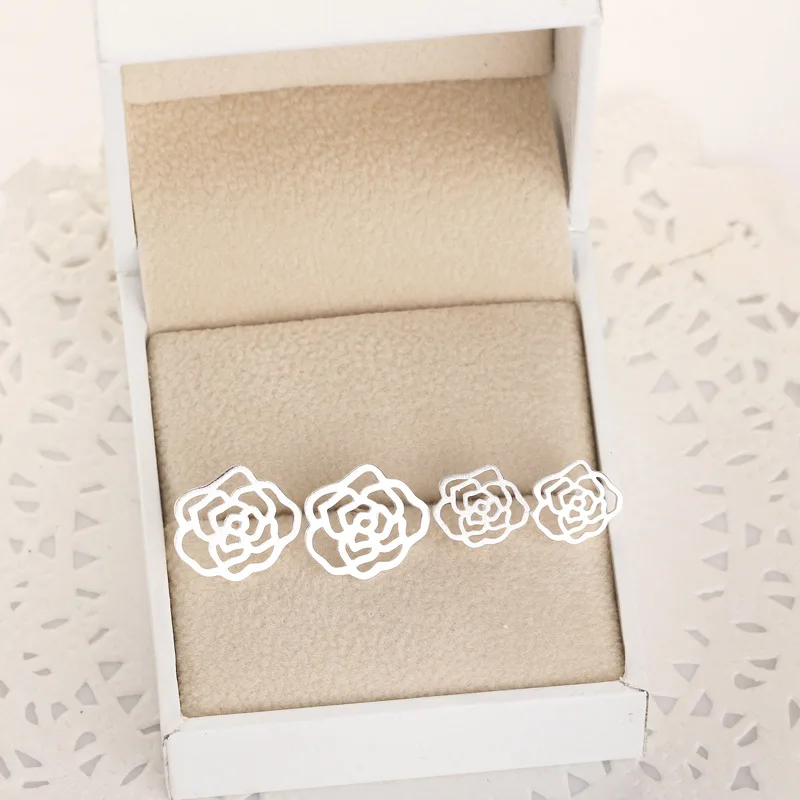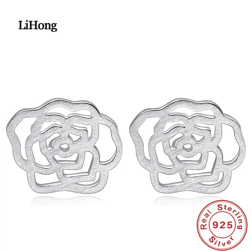 100% 925 Silver Earring Charm Camellia Stud Earrings Women Jewelry Wholesale