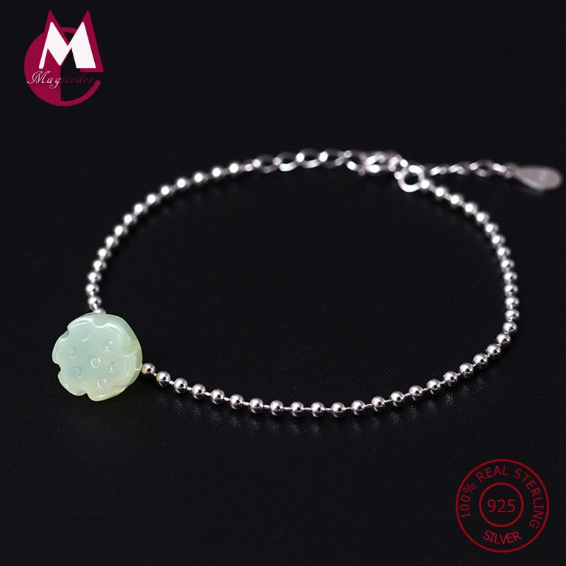 100% 925 Sterling Silver Bracelets For Women Natural Stone Jade Bangles Gem Round Beads Tassel Chain Wedding Gift Jewelry YB40