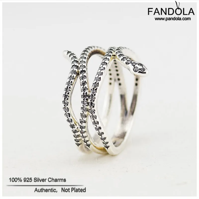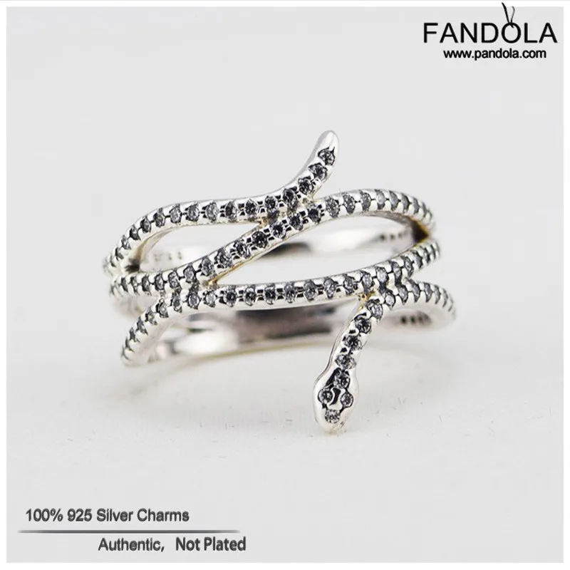 Authentic 925 Sterling Silver Rings with Clear CZ Snake Ring for Women Girls Gift Wedding Jewelry Sterling-Silver-Jewelry