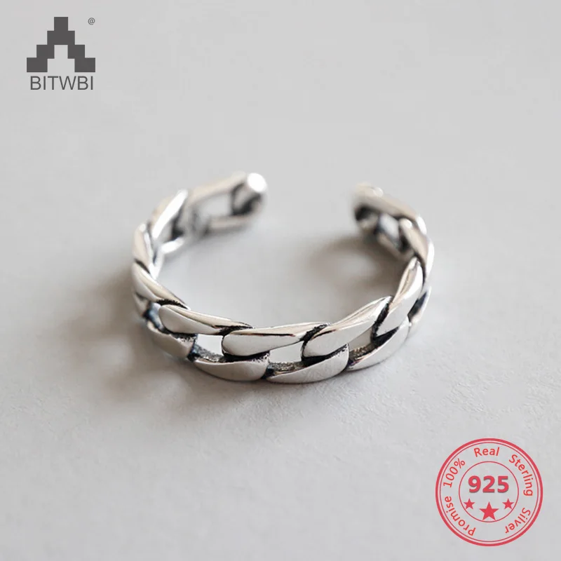 100% 925 Sterling Silver Punk Ring Cycle Chain Finger Open Rings Fine Couple Jewelry