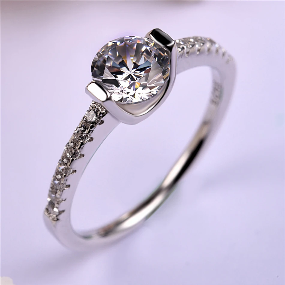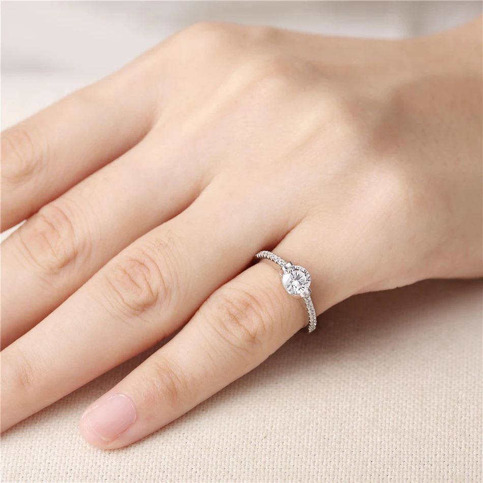 100% 925 Sterling Silver Ring Stackable Love Hearts With Crystal Rings For Women Wedding Party Gift fit Lady Jewelry