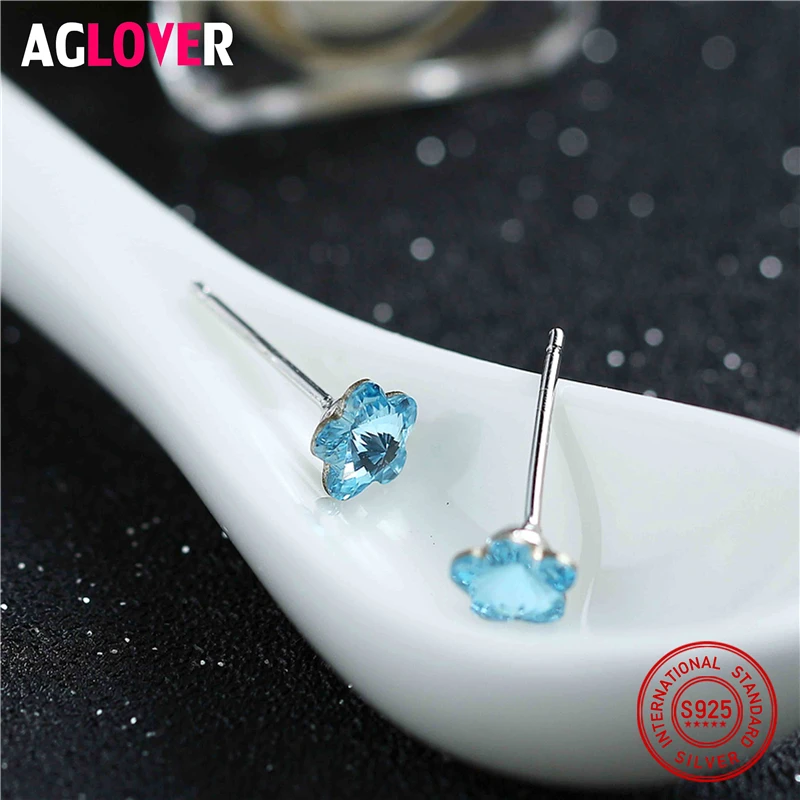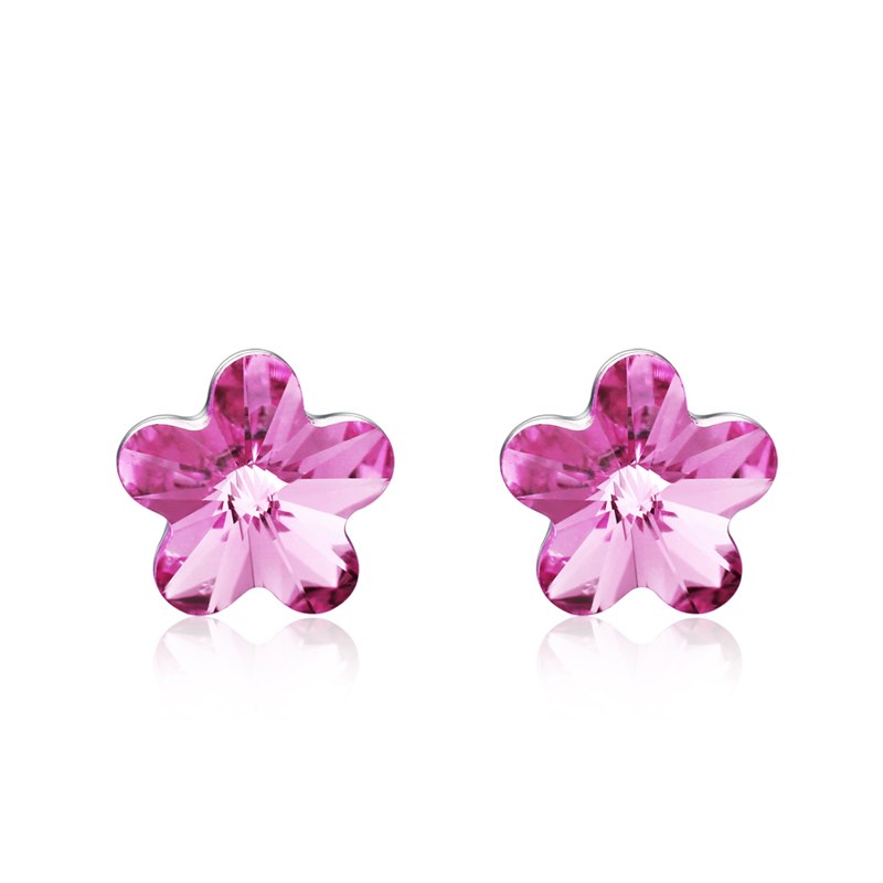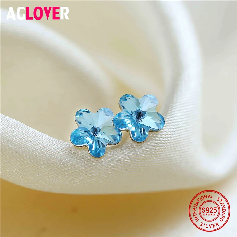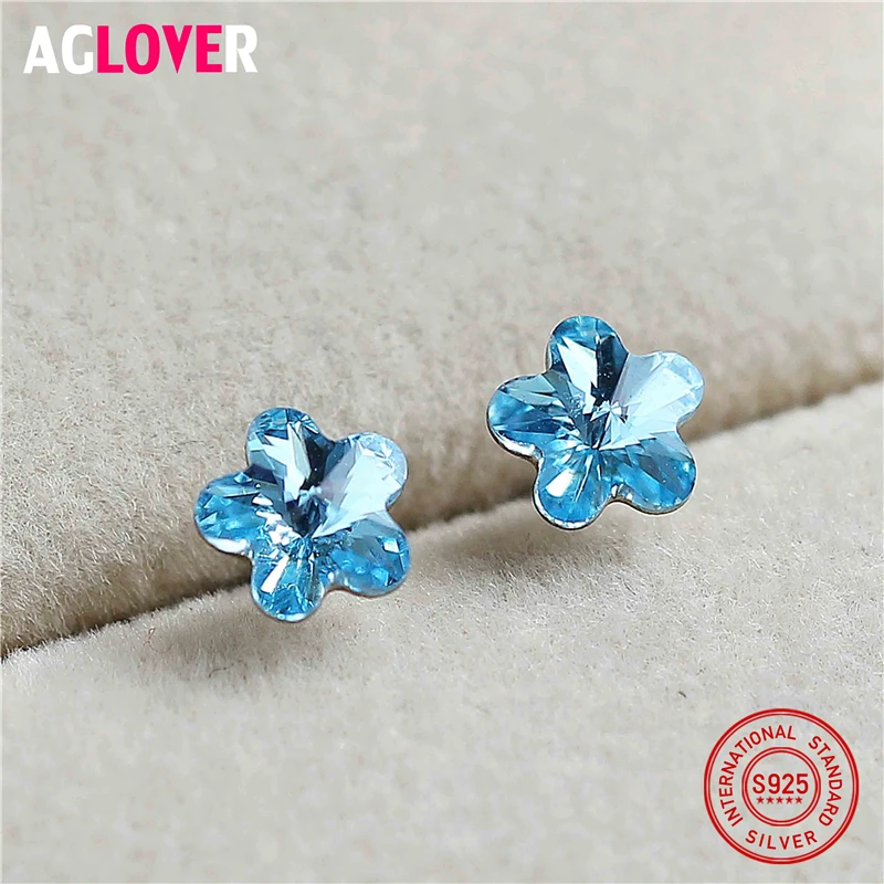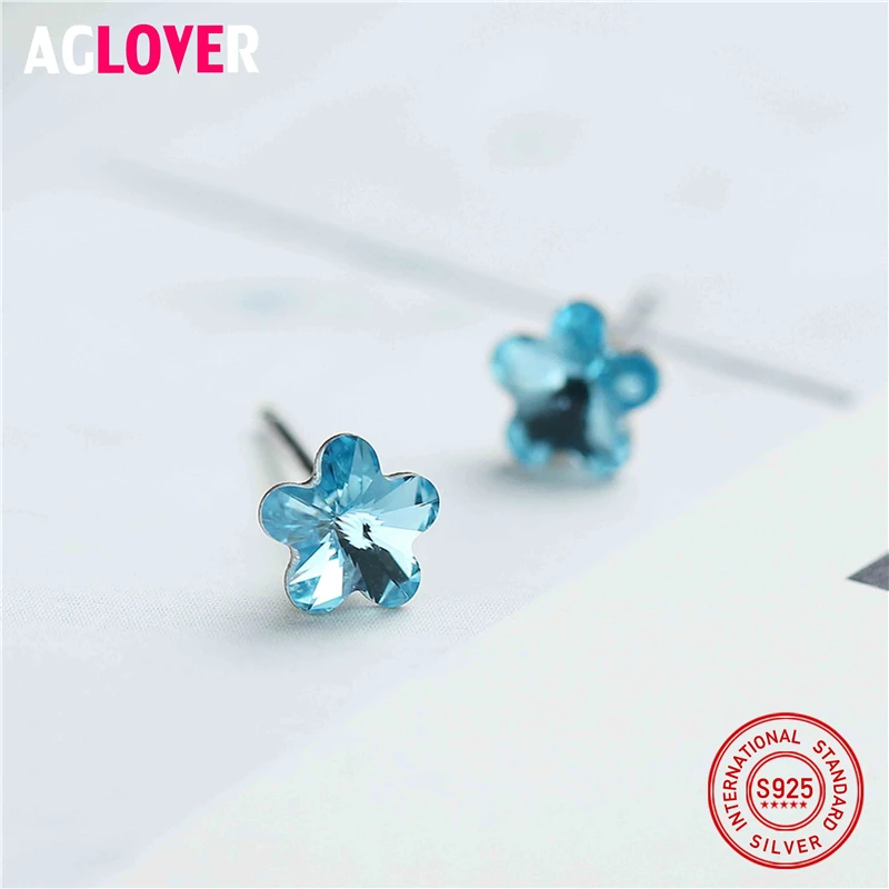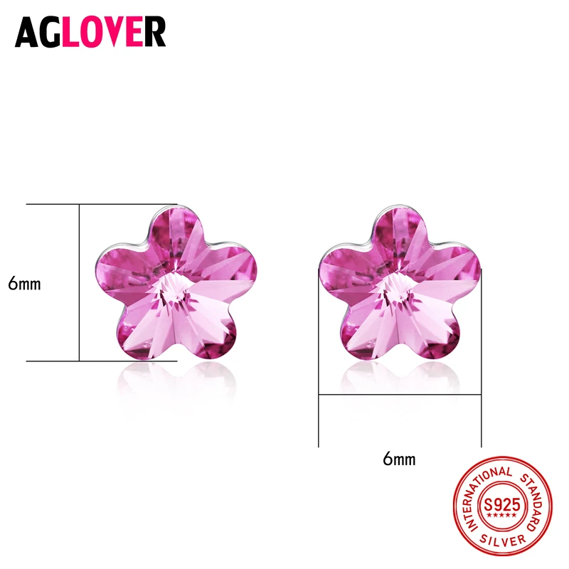 100% 925 Sterling Silver Shiny Crystal Plum Flower Ladies`Stud Earrings Female Jewelry Women Gift Wholesale