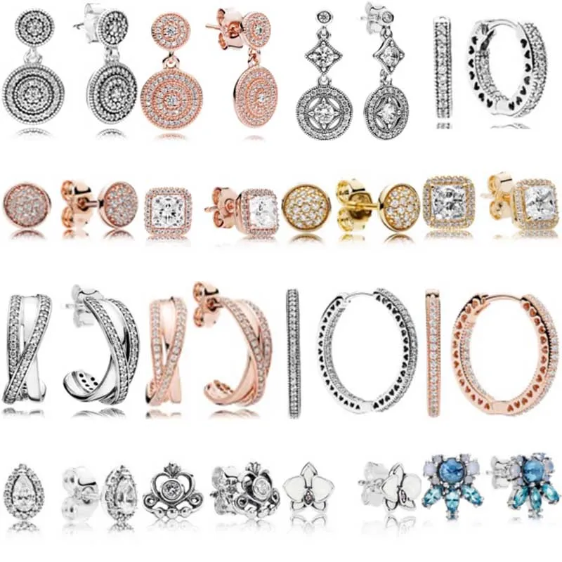 100% 925 Sterling Silver Vintage Allure Hanging Earrings Fit Original DIY Charms Entwined Earring Hoops Girl gifts