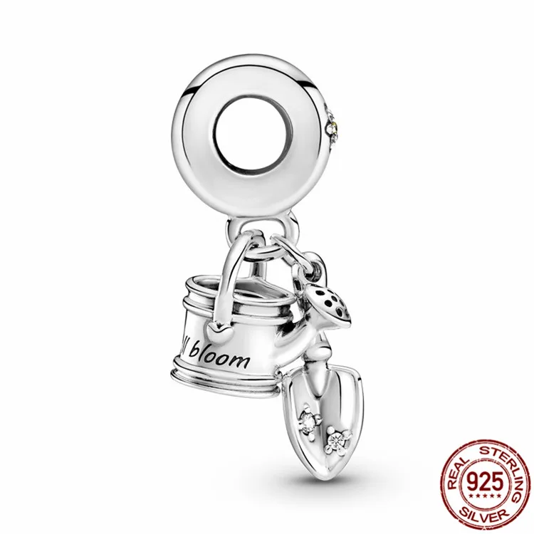 100% 925 Sterling Silver Watering Bottle & Trowel Charm Fit Pandora Original Bracelets And Necklaces, Silver Jewelry