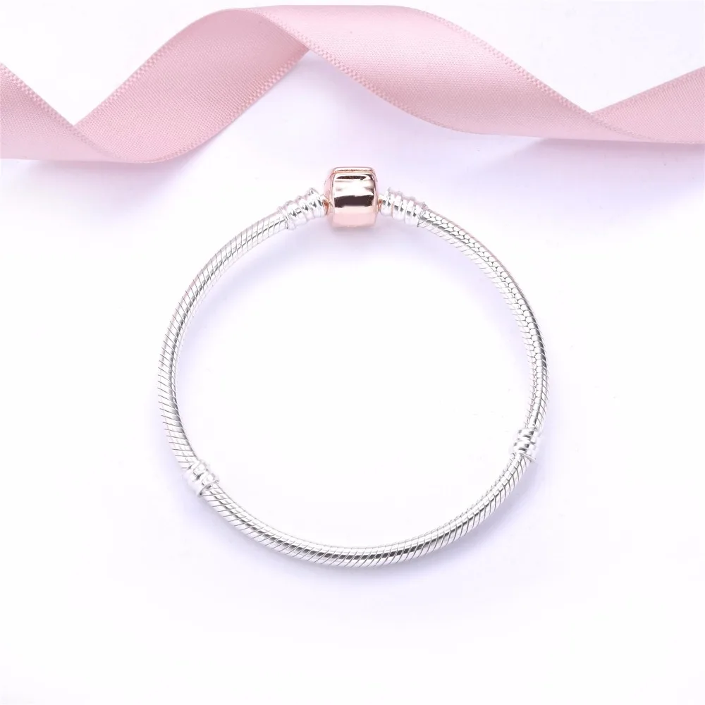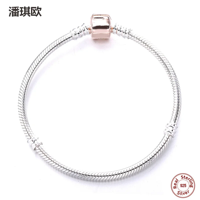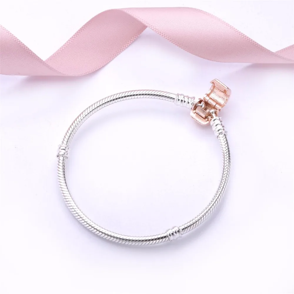 100% Authentic 925 sterling silver rose gold buckle bracelet Snake chain For women Fit original pandora bracelet DIY jewelry