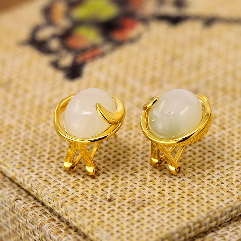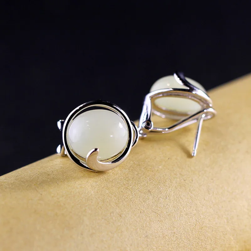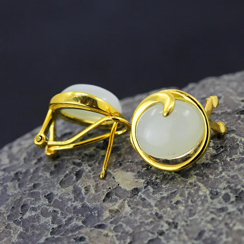 100% Genuine 925 Sterling Silver Earrings For Women Jewelry Fine Gold Silver Color Natural Stone Fashion Jade Stud Earring SE110