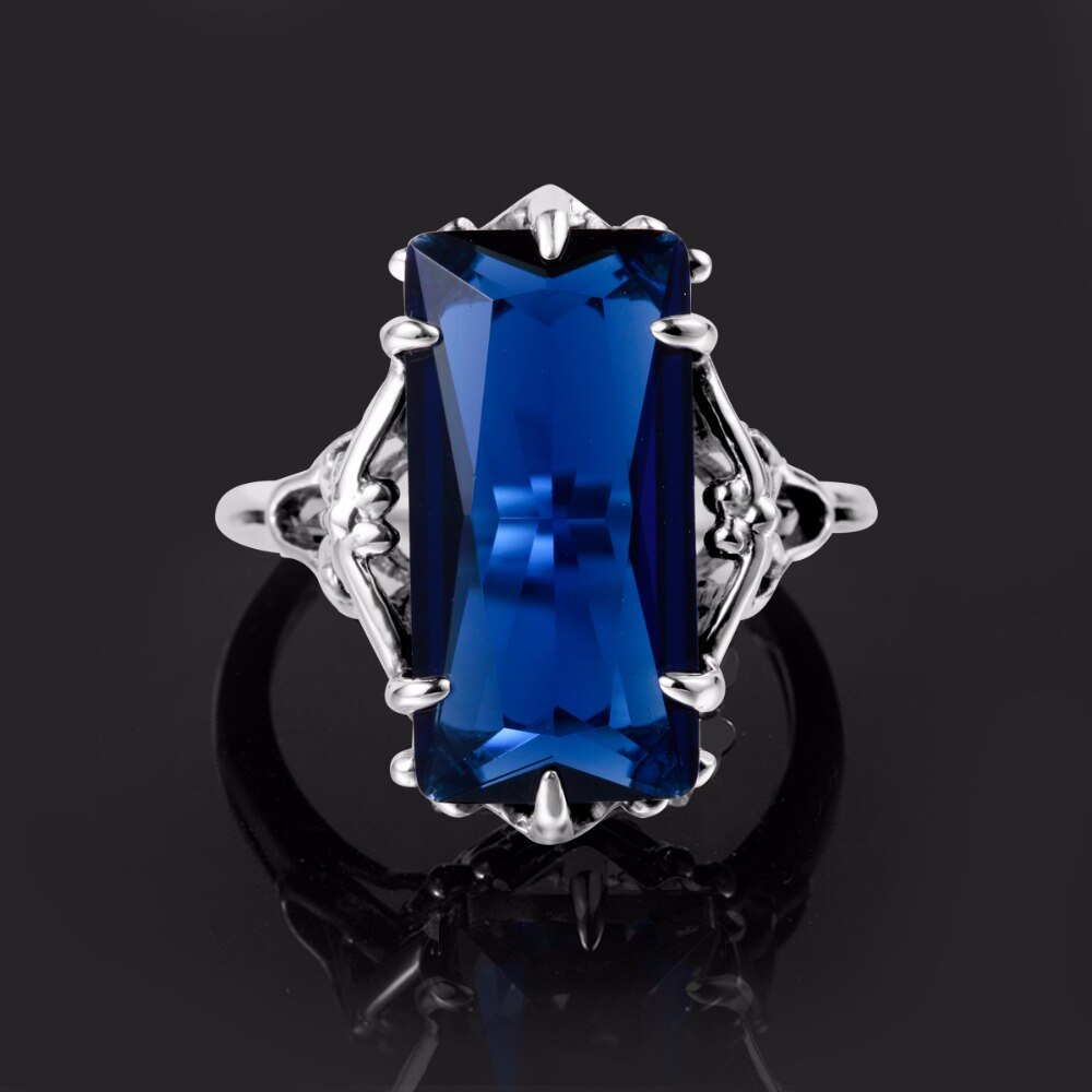 100% Handmade Real 925 Sterling Silver Rings For Women Classic Big Lab Sapphire Stone Anniversary Ring Fine Jewelry Gift
