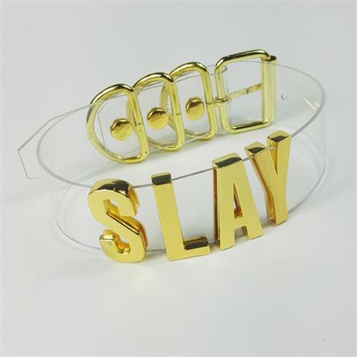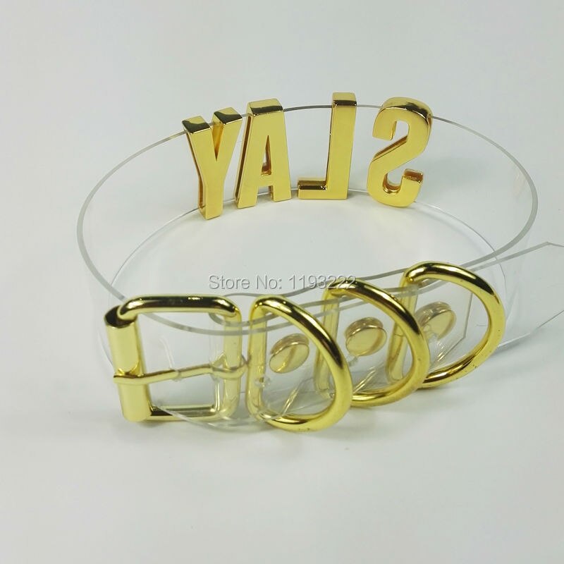 100% Handmade Slay Choker BDSM Fetish Bondage Collar Gold 35mm Tall Big Letters Word Name Necklace