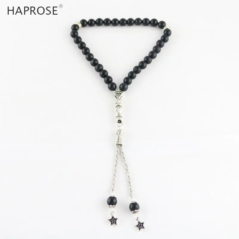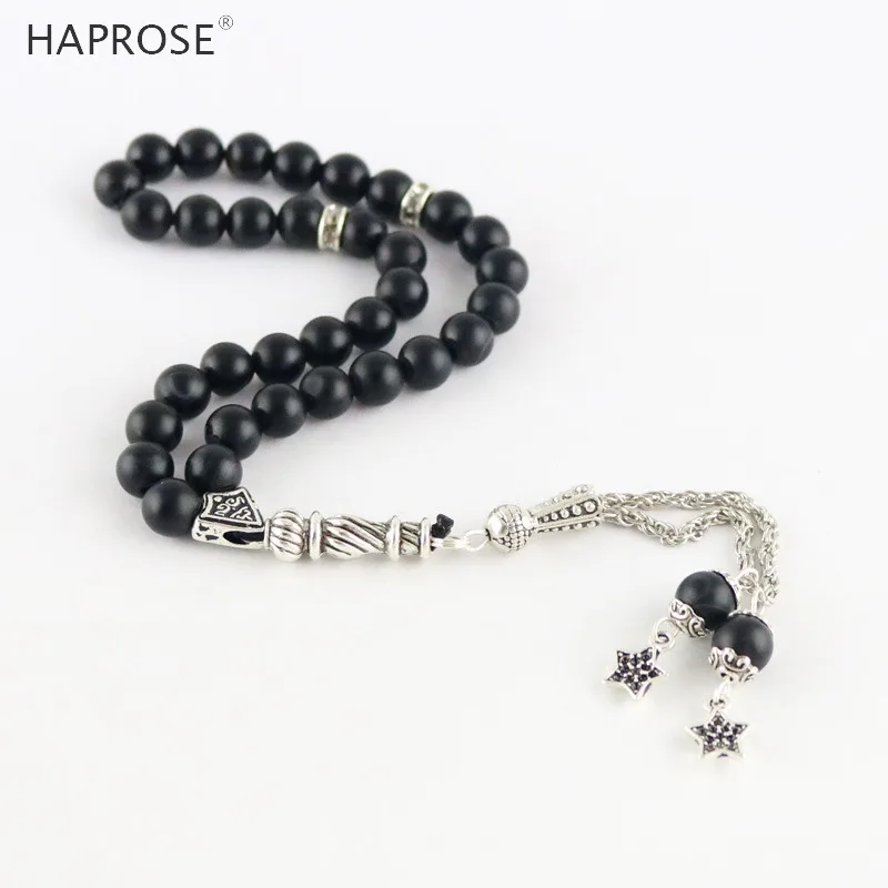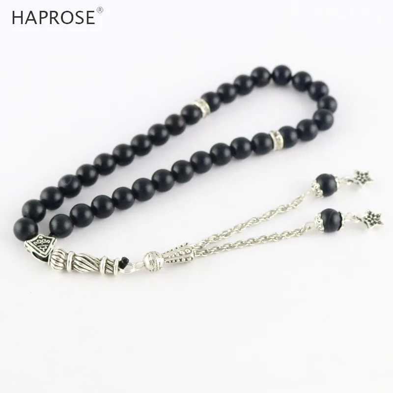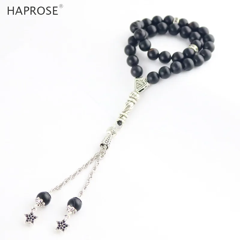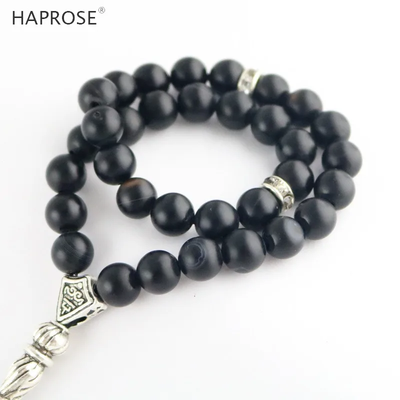 100% Natural Agate 33 Beads Muslim Bracelet 6-12mm Tasbih Ala Rosaries Scrub Bead National Wind Men Bracelet