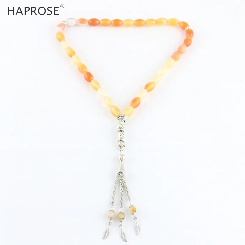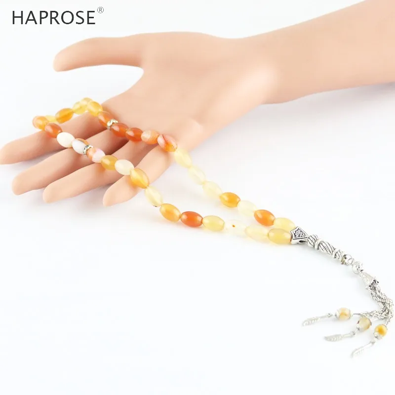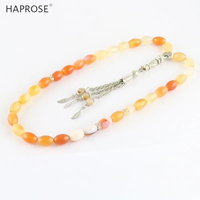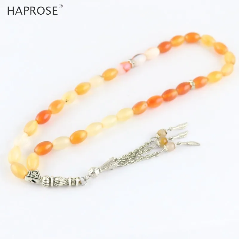 100% Natural Agate 33 Beads Muslim Bracelet Tasbih Alla Prayer Beaded Rice Style Ethnic Tassel Bracelet Gift