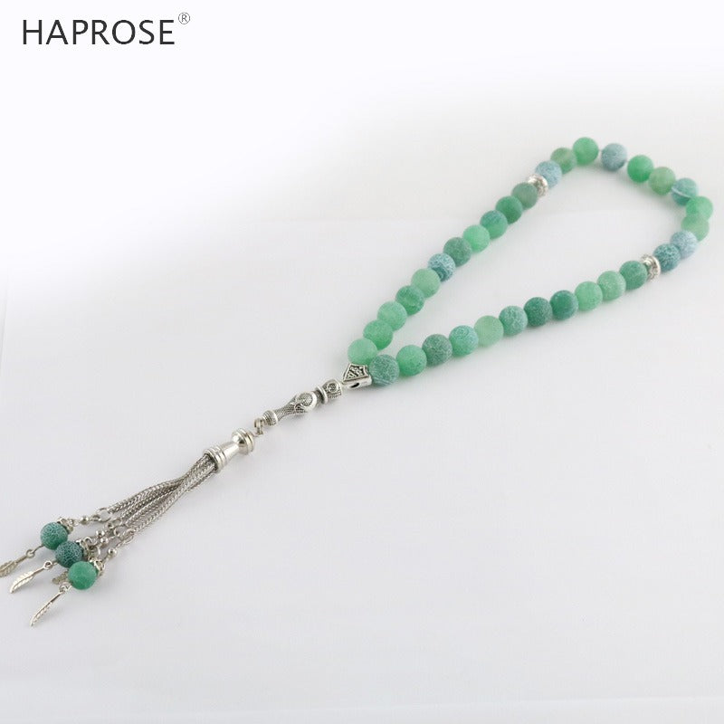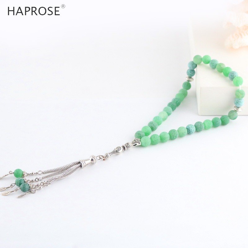 100% Natural agate bracelet Prayer Islamic Muslim tasbih Allah Rosary 33 beads green Weathered agate stone Bracelet 6-10mm
