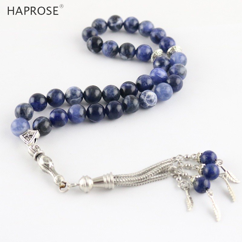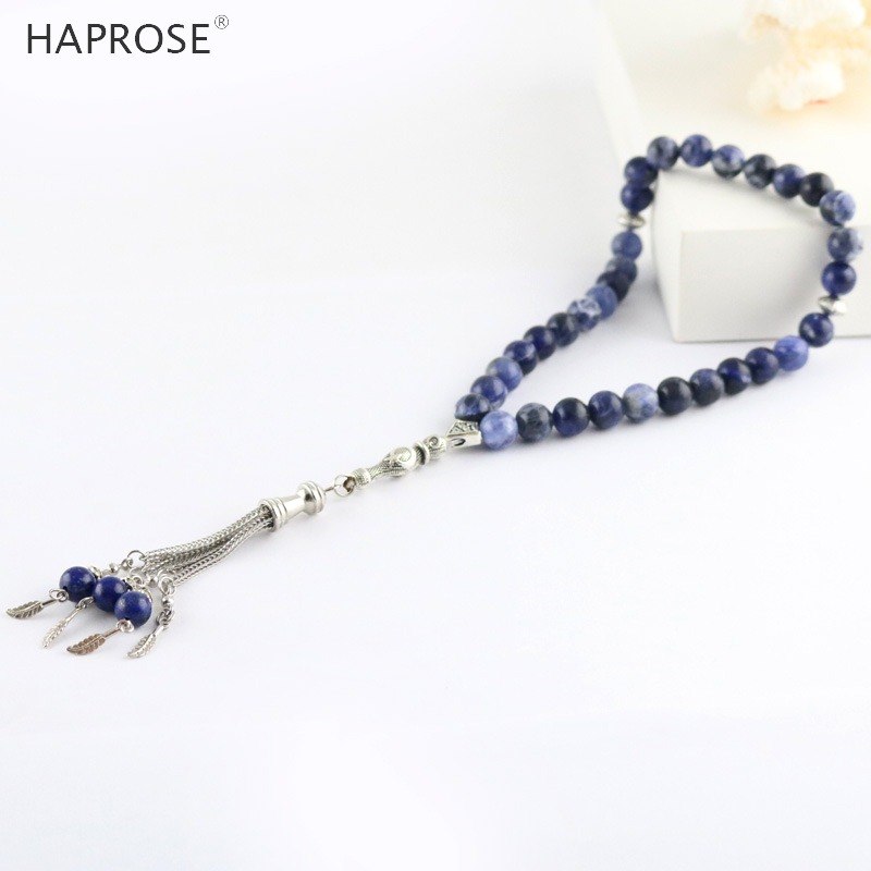 100% Natural agate Muslim tasbih Allah Rosary bracelets 33 beads Blue Stripe Agate Stone 6-10mm Islamic Bracelet