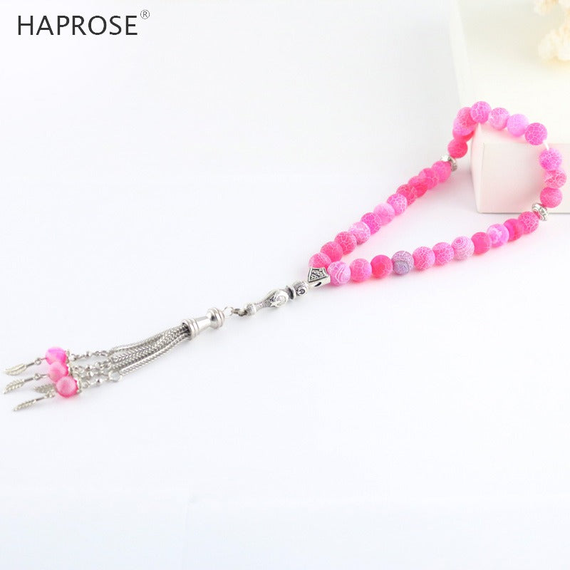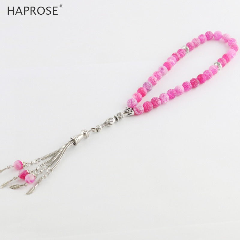 100% Natural agate Prayer Islamic Muslim tasbih Allah Rosary bracelets 33 beads rose Red Weathered agate stone Bracelet 6-10mm