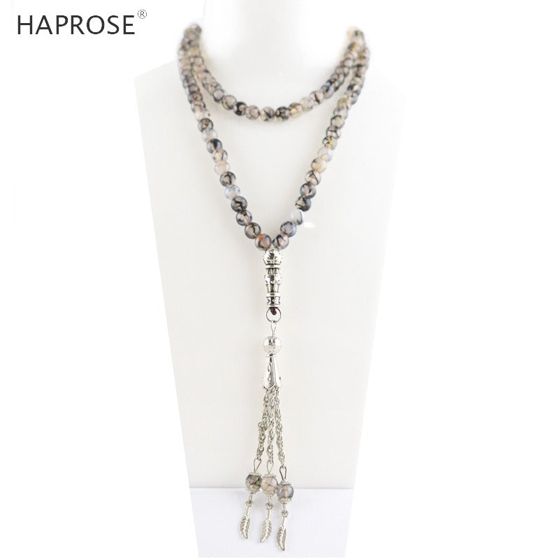 100% Natural Black line agate green tasbin Prayer Islamic Muslim tasbih Allah Rosary Pattern agate 99 beads 6-10mm necklace