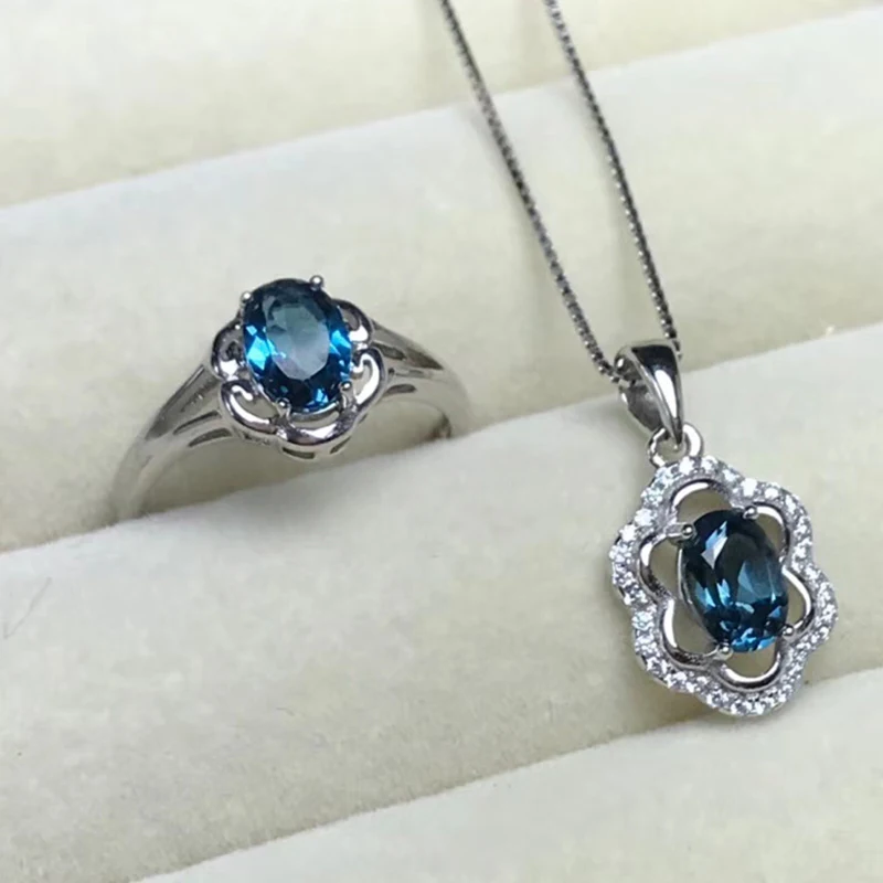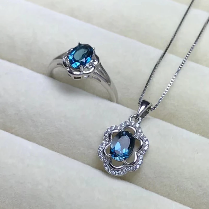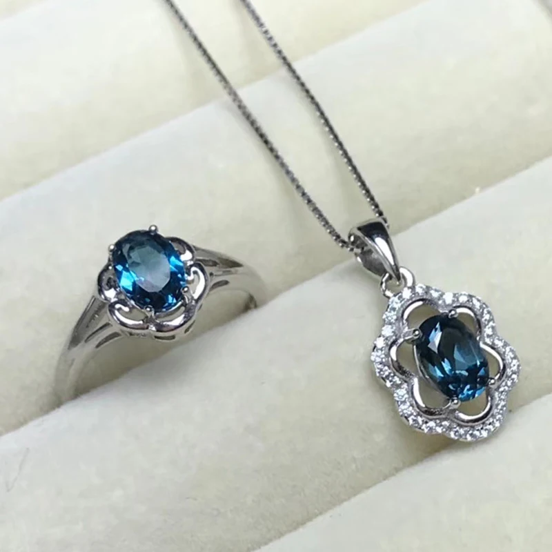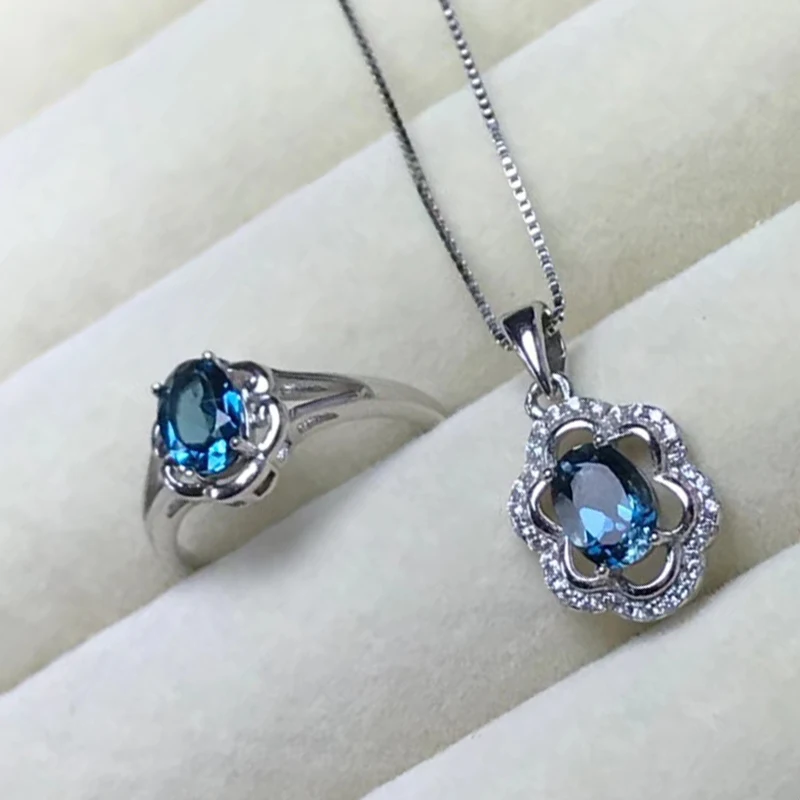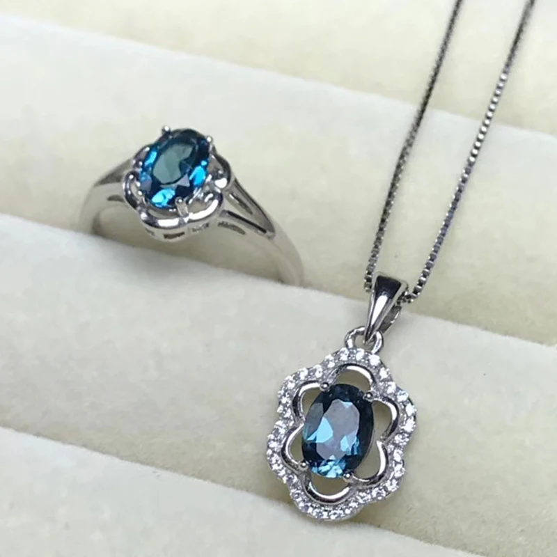 100% Natural light blue topaz jewelry set for party rose gold color 925 silver topaz ring earrings pendant set gift for girl