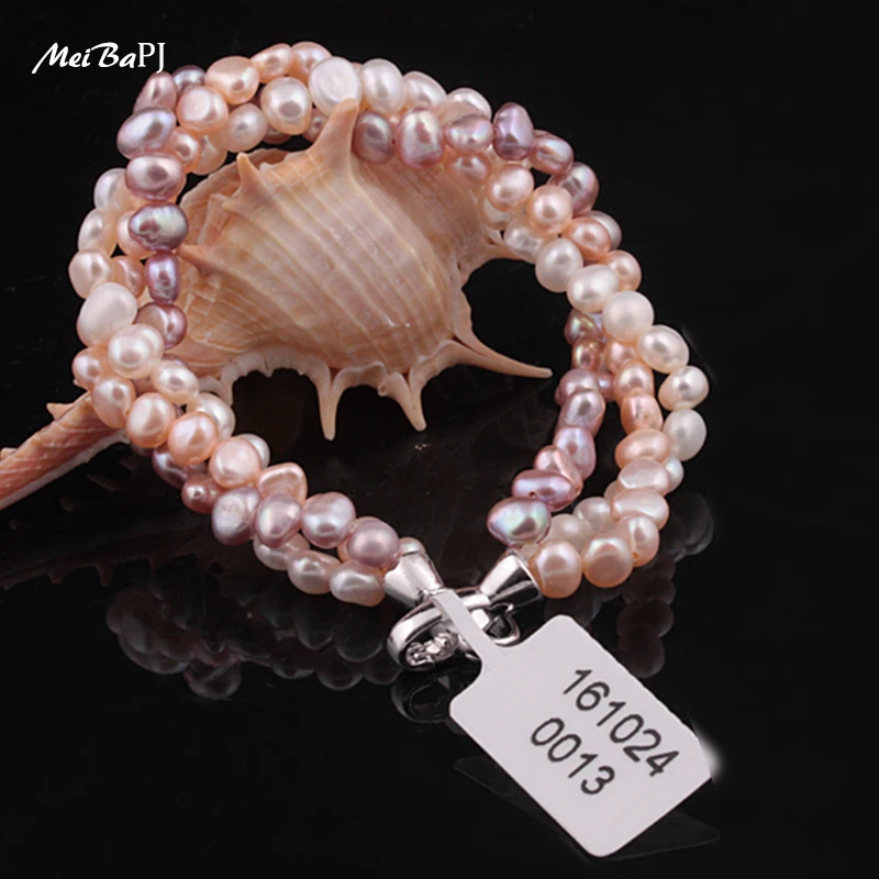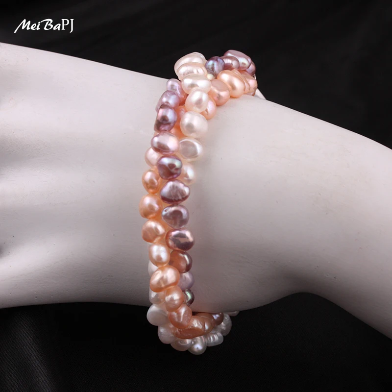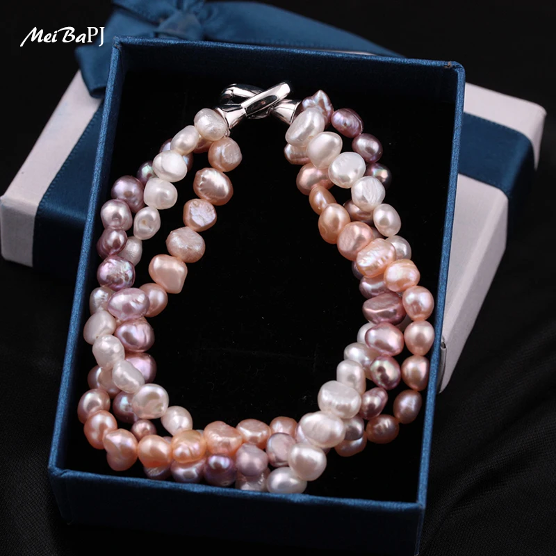 Natural Mixed Color Pearl Bracelet Pure Handmade Bangle Pearl With Real 925 Silver Clasp Fine Jewelry SL-113