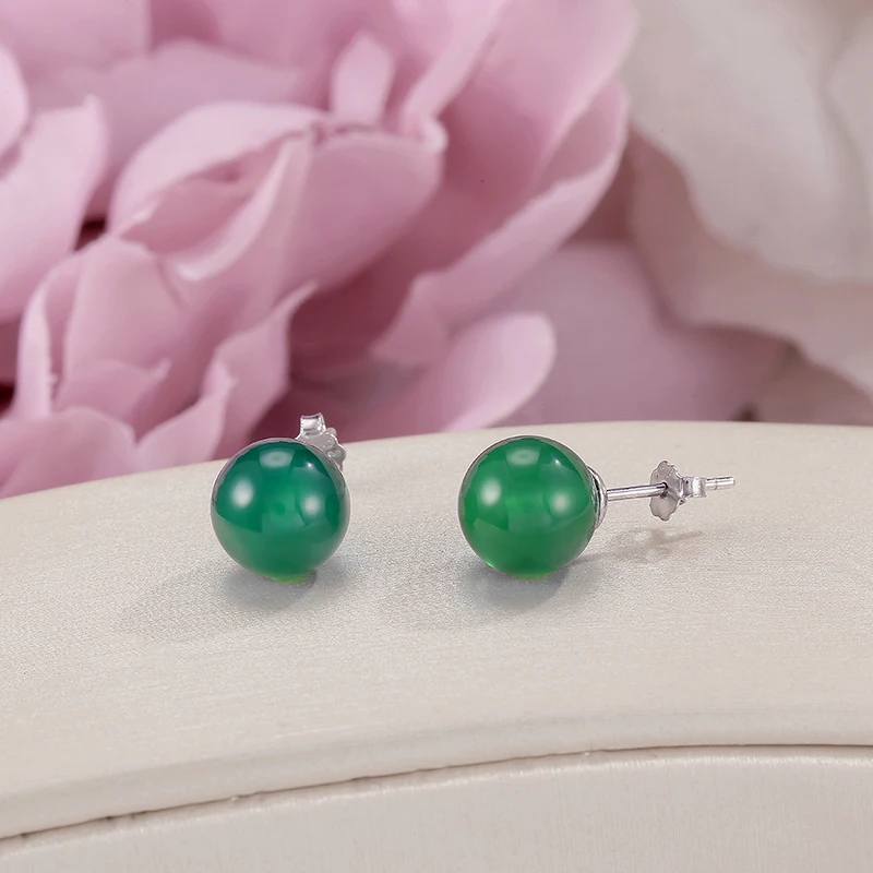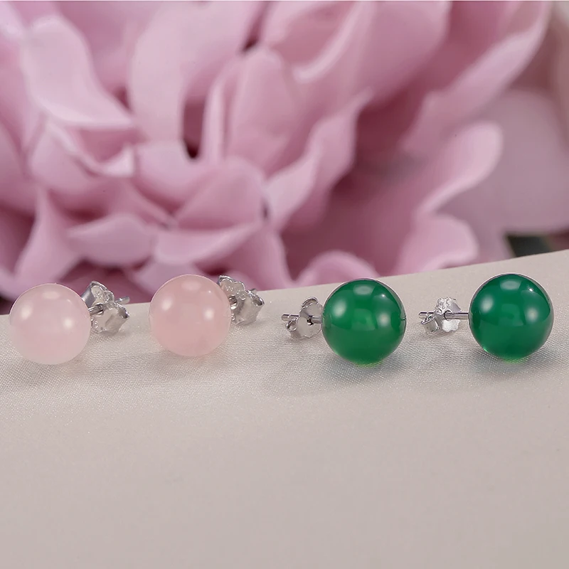 100% Natural Rose Quartz Agate 8mm Stud Earring For Women S925 Sterling Silver Fine Jewelry Round Pink Green Gemstone Brincos