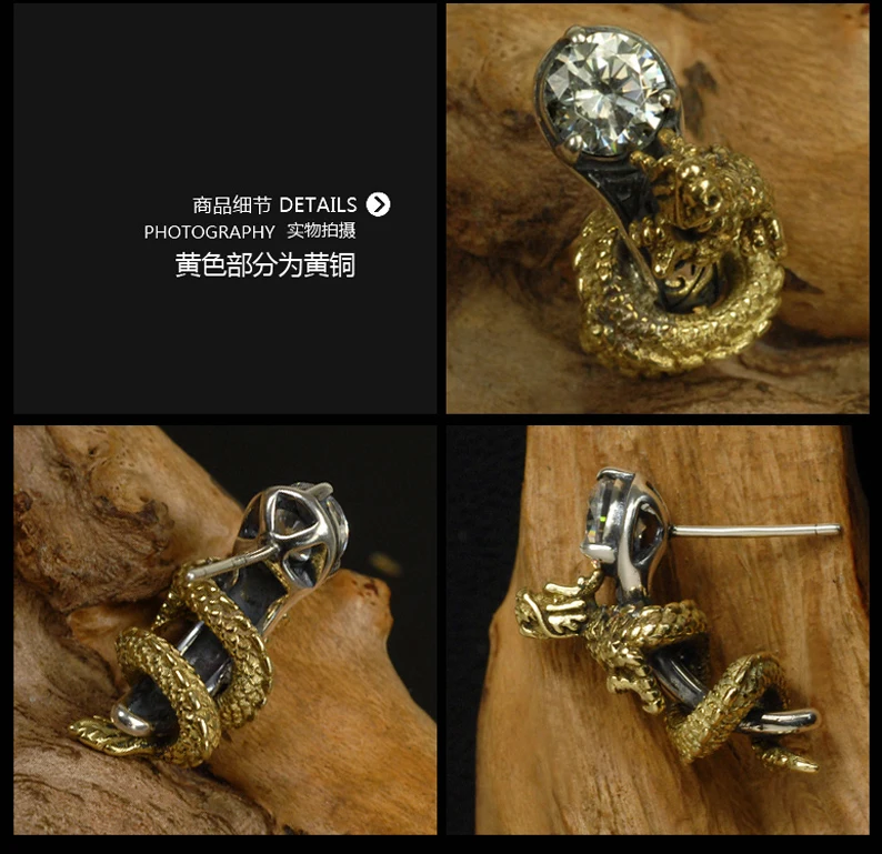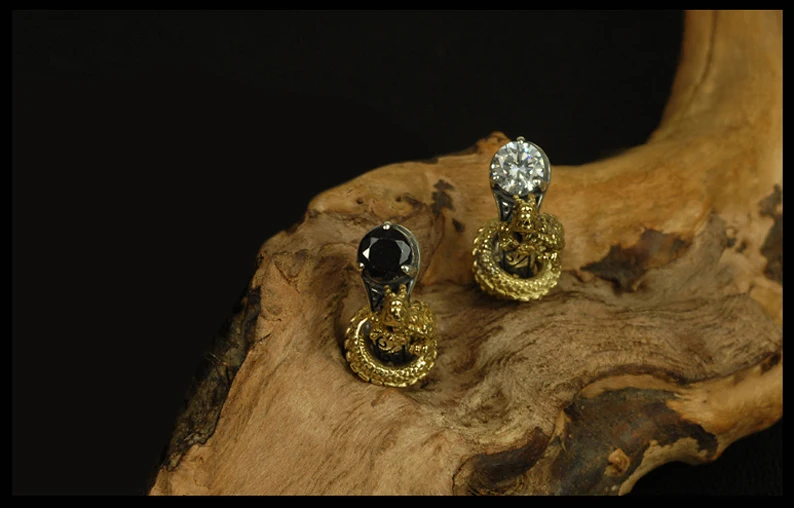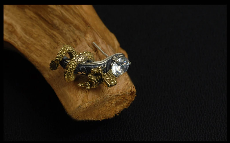 100% Pure 925 Sterling Silver Dragon Earrings Fashion Punk Jewelry Stud Earring For Men And Women Gift 1216