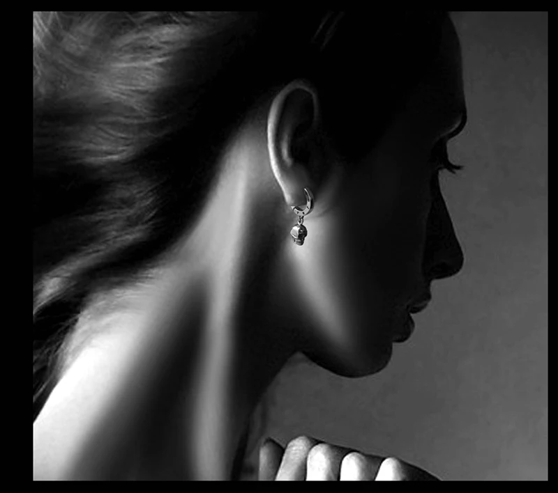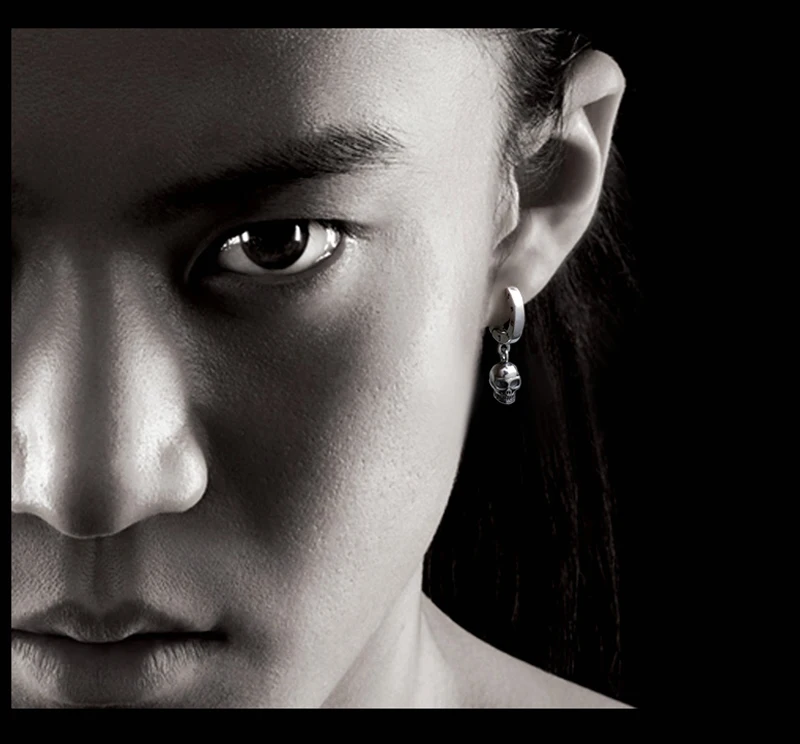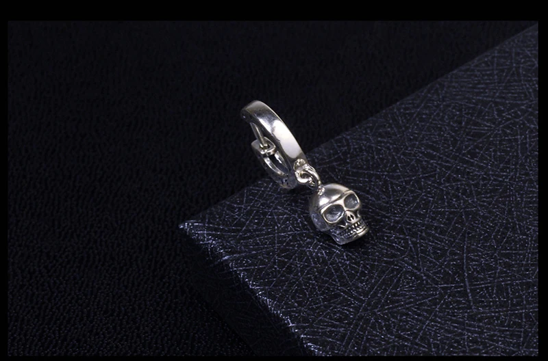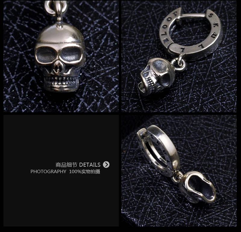 100% Pure 925 Sterling Silver Earrings Fashion Punk Jewelry Skull Skeleton Stud Earring For Men And Women Gift 1255