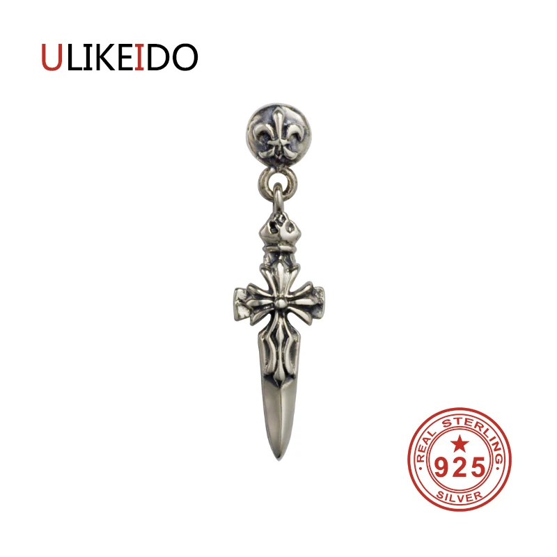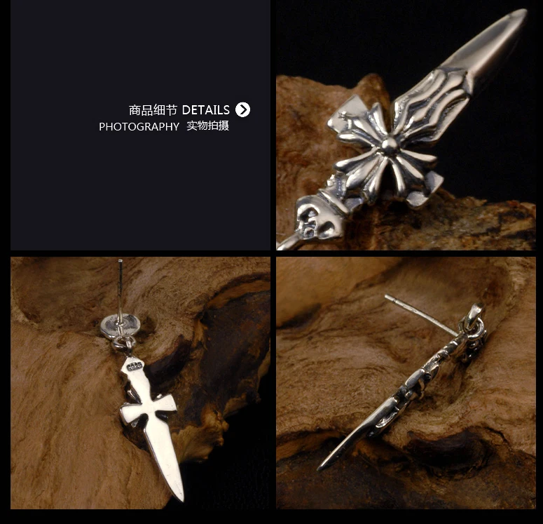 100% Pure 925 Sterling Silver Sword Earrings Fashion Punk Jewelry Stud Earring For Men And Women Gift 1228