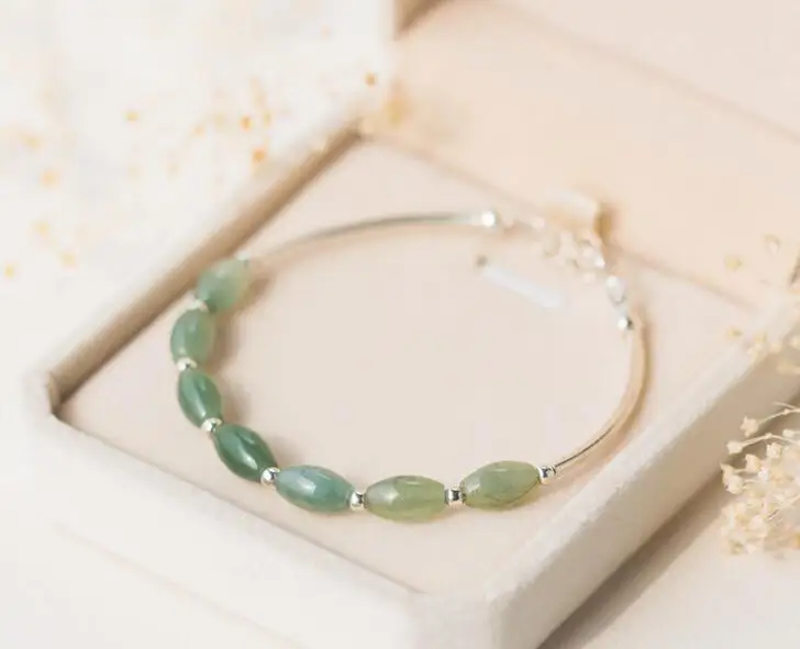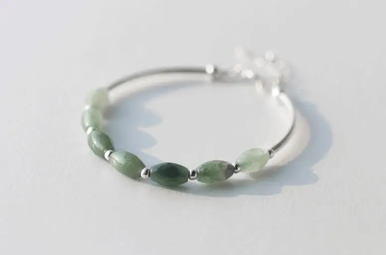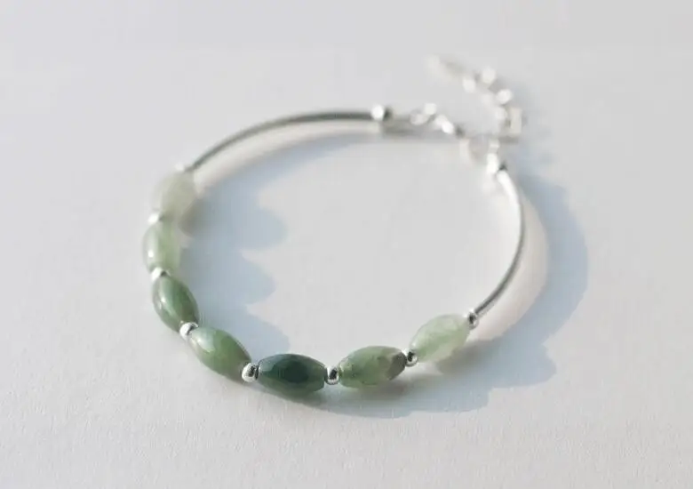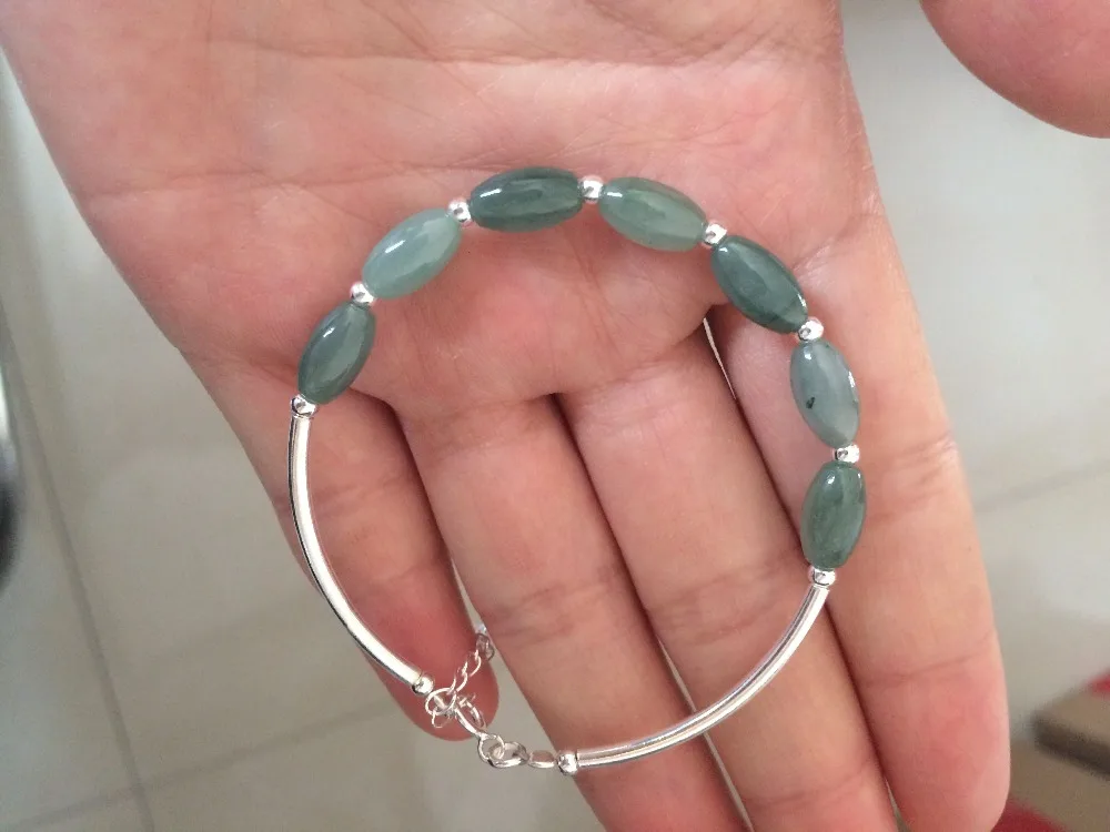 100% Real. 925 Sterling Silver Natural Green Jade Oval/ waterdrop &Lucky Ball round bead charms Bracelet Bangle Cuff GTLS398