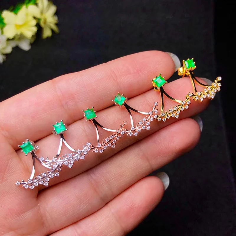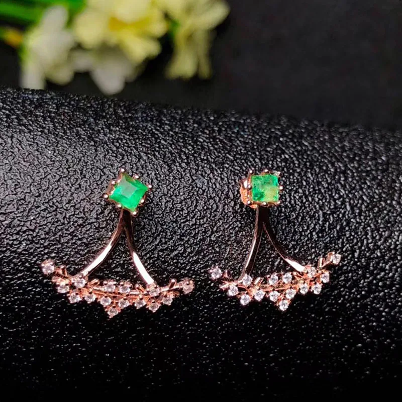 100% real emerald stud earrings for wedding 3 mm*3 mm VS grade emerald silver earrings solid 925 sterling silver emerald jewelry
