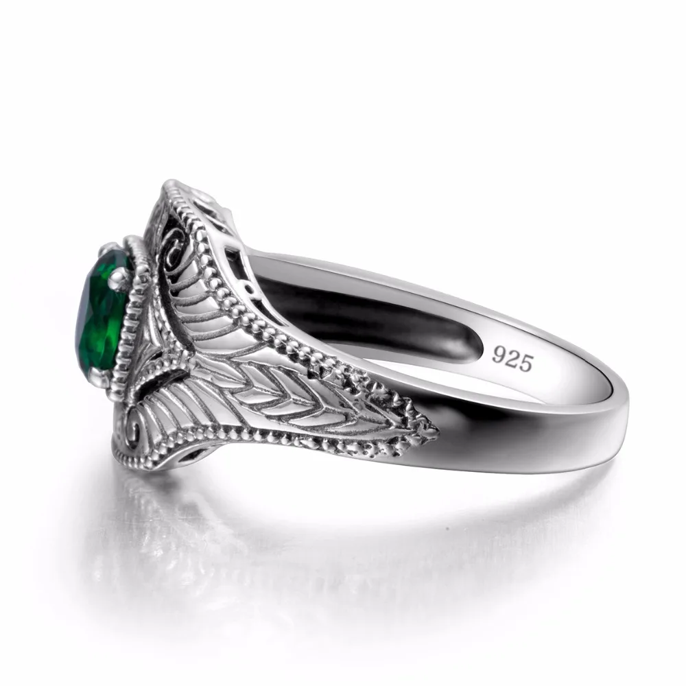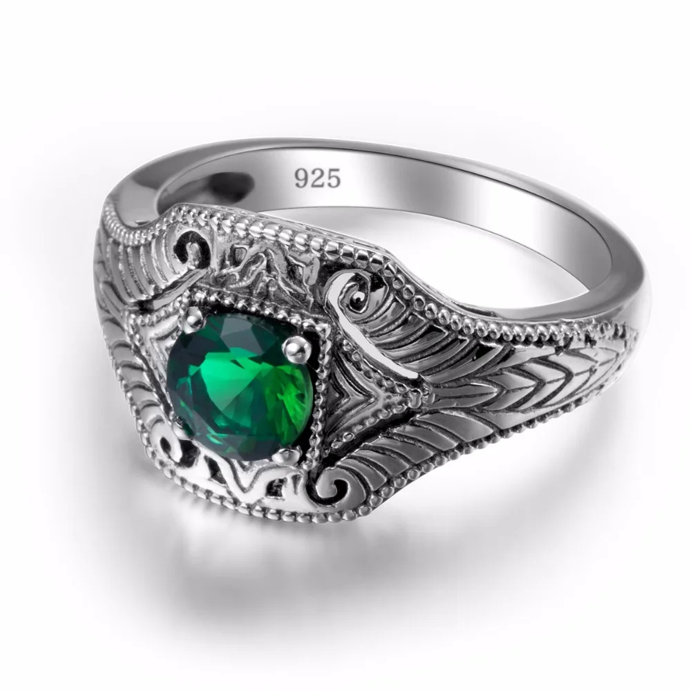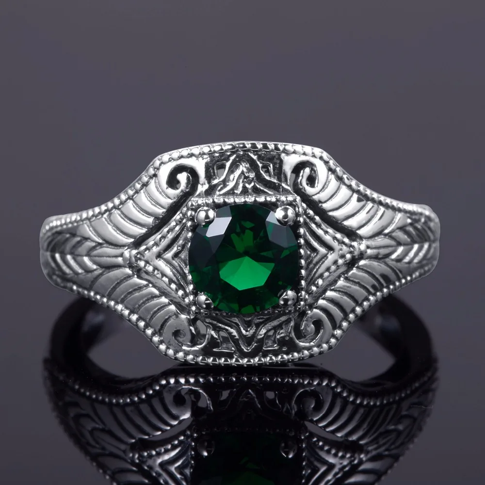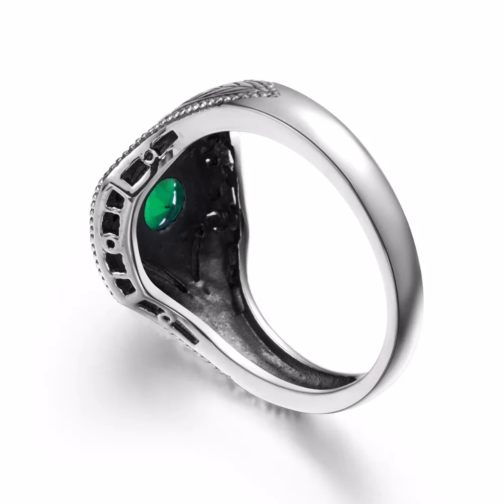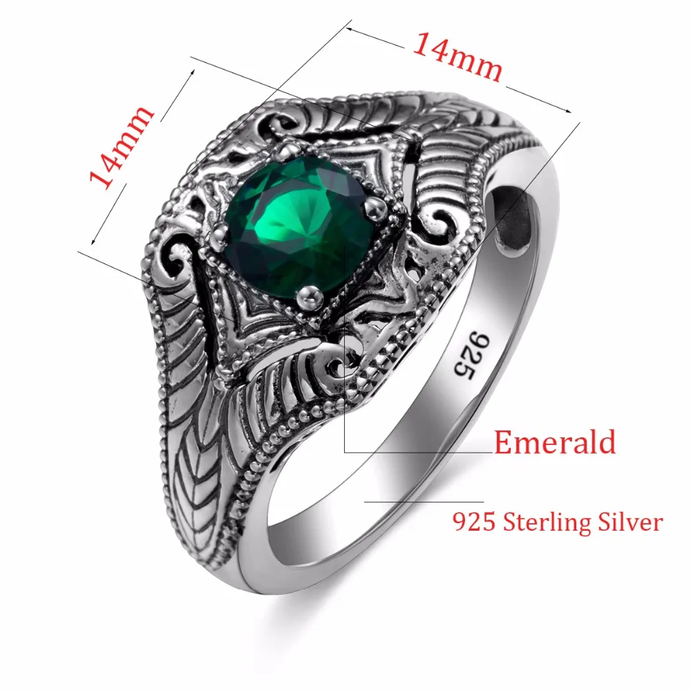 100% Real Pure 925 Sterling Silver Rings Green CZ Stone For Women Men Bulgaria Jewelry Vintage Design Silver Finger Ring