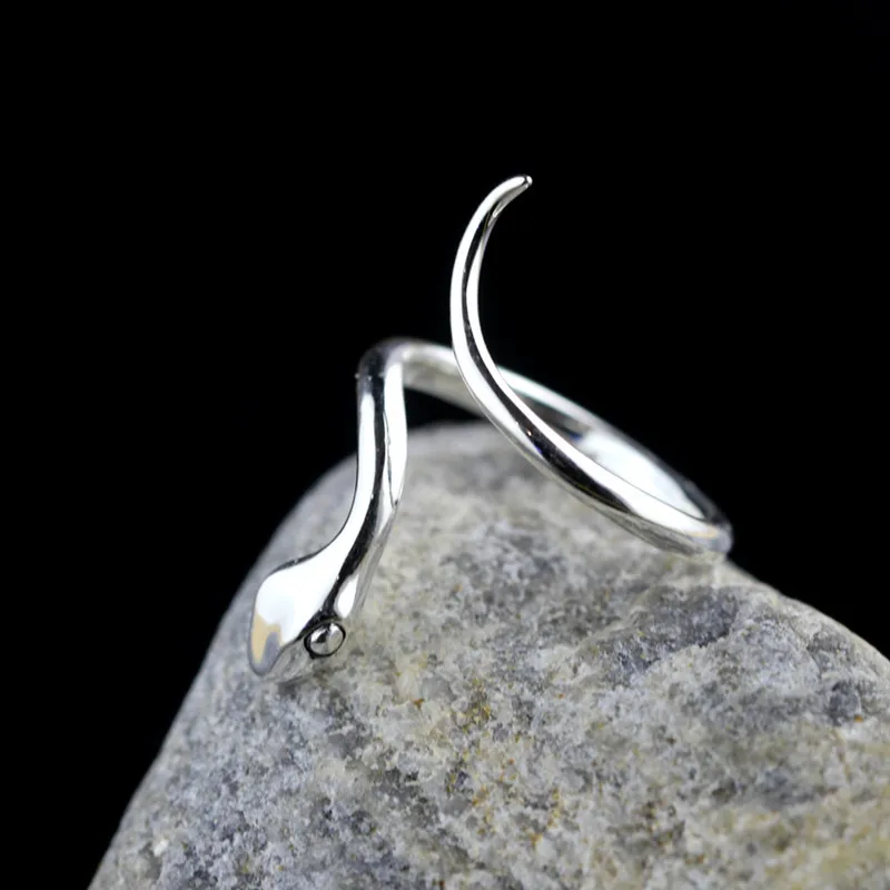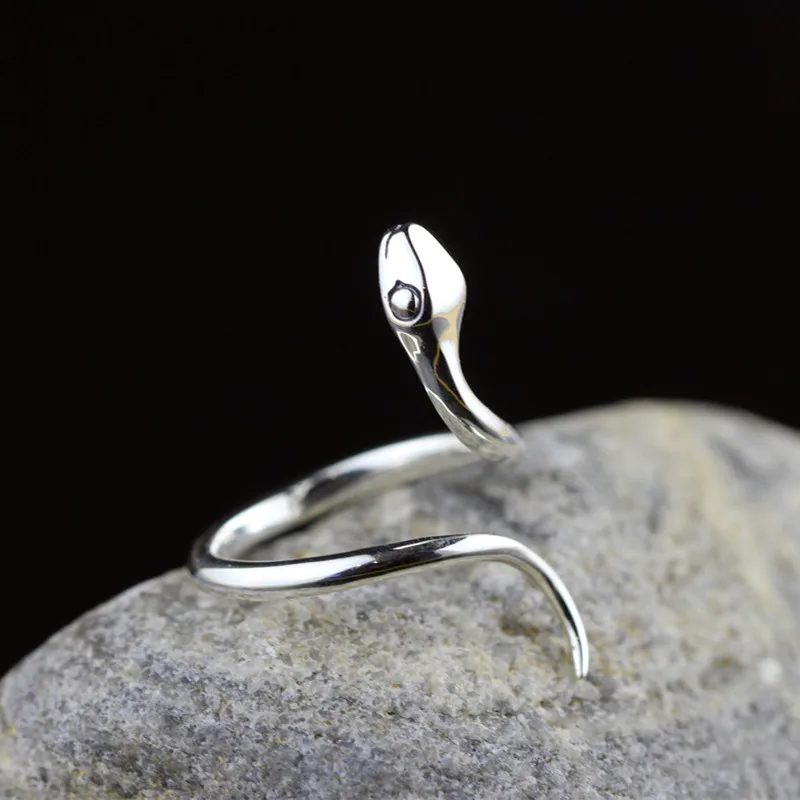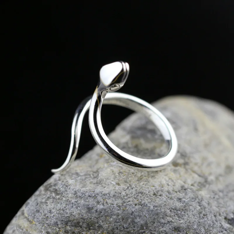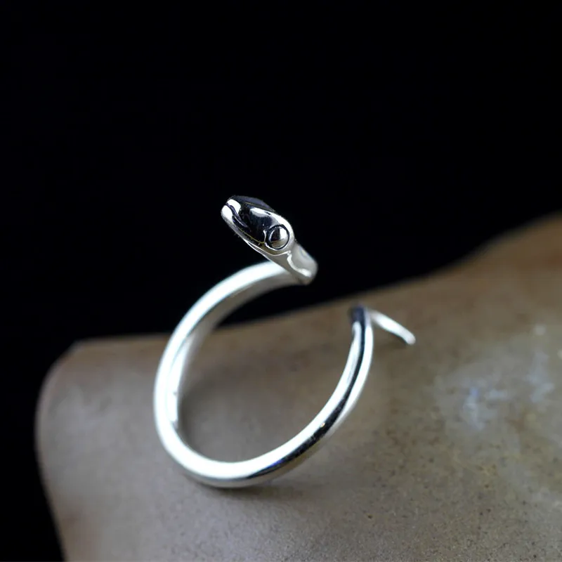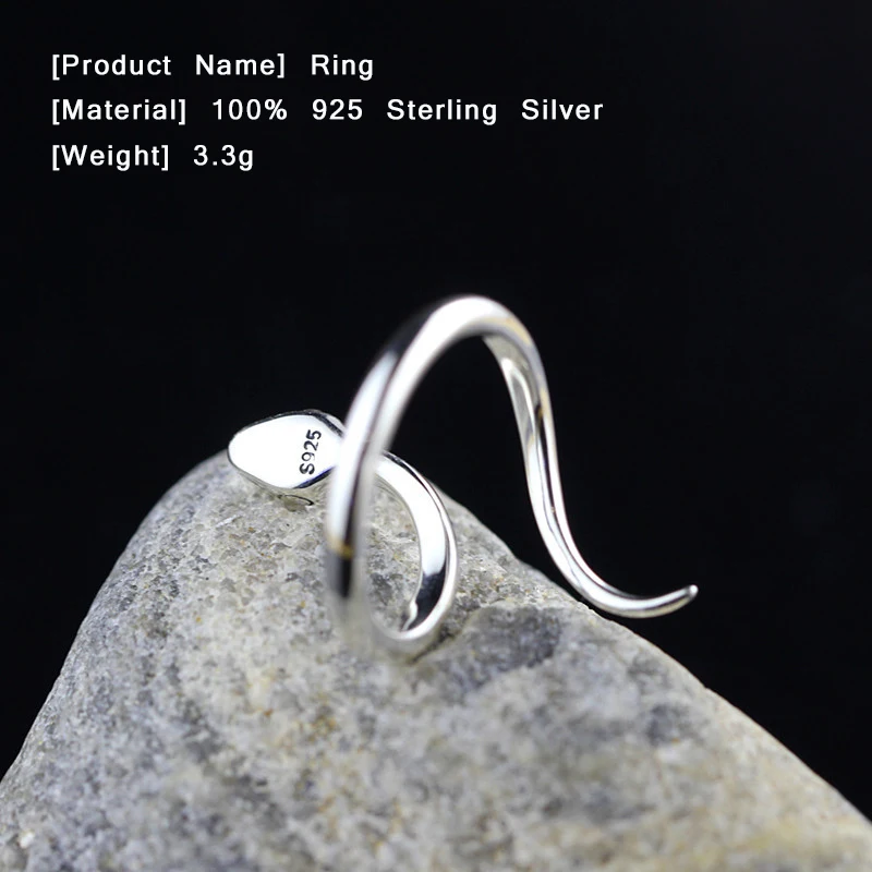100% Real Sterling Silver Ring For Women Handmade Snake Heavy Metals Punk Rock Open Ring Vintage Animal Party Men Jewelry SR83
