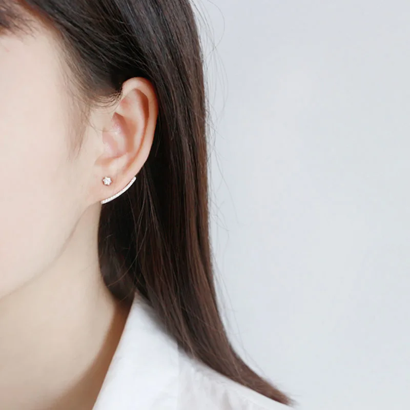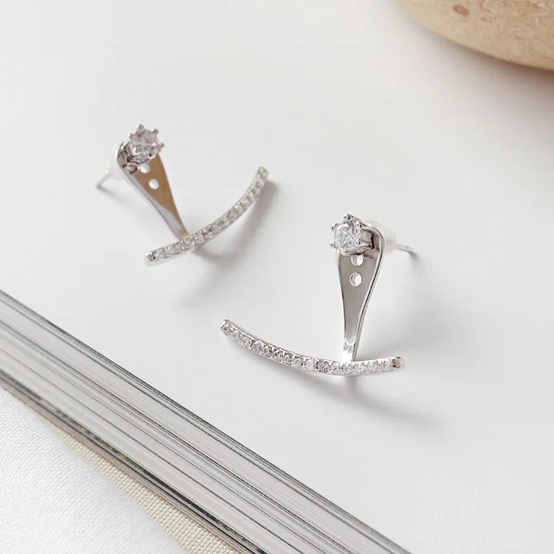100% S925 Sterling Silver 2020 Arc-shaped Earrings Cubic Zirconia Dangle Earrings for Women Wedding Party Earrings