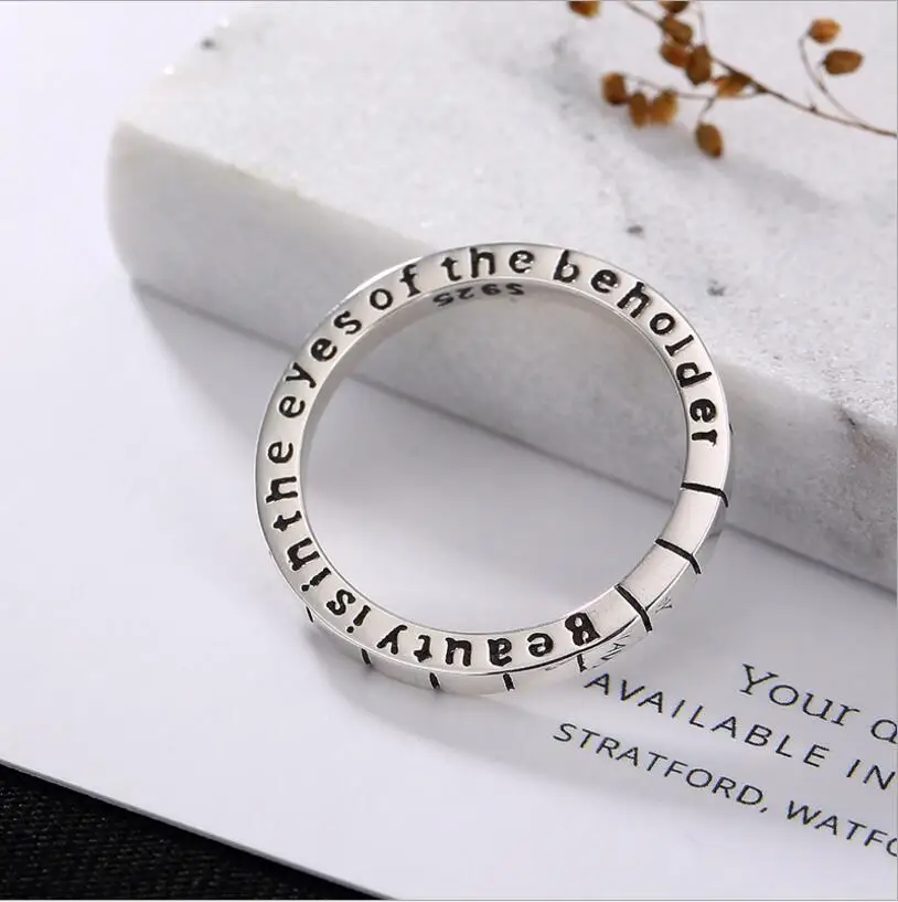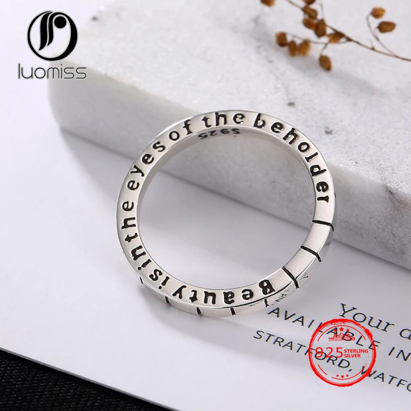 100% S925 Sterling Silver Vintage Letter Ring for Women Fashion Jewelry Gift Ring