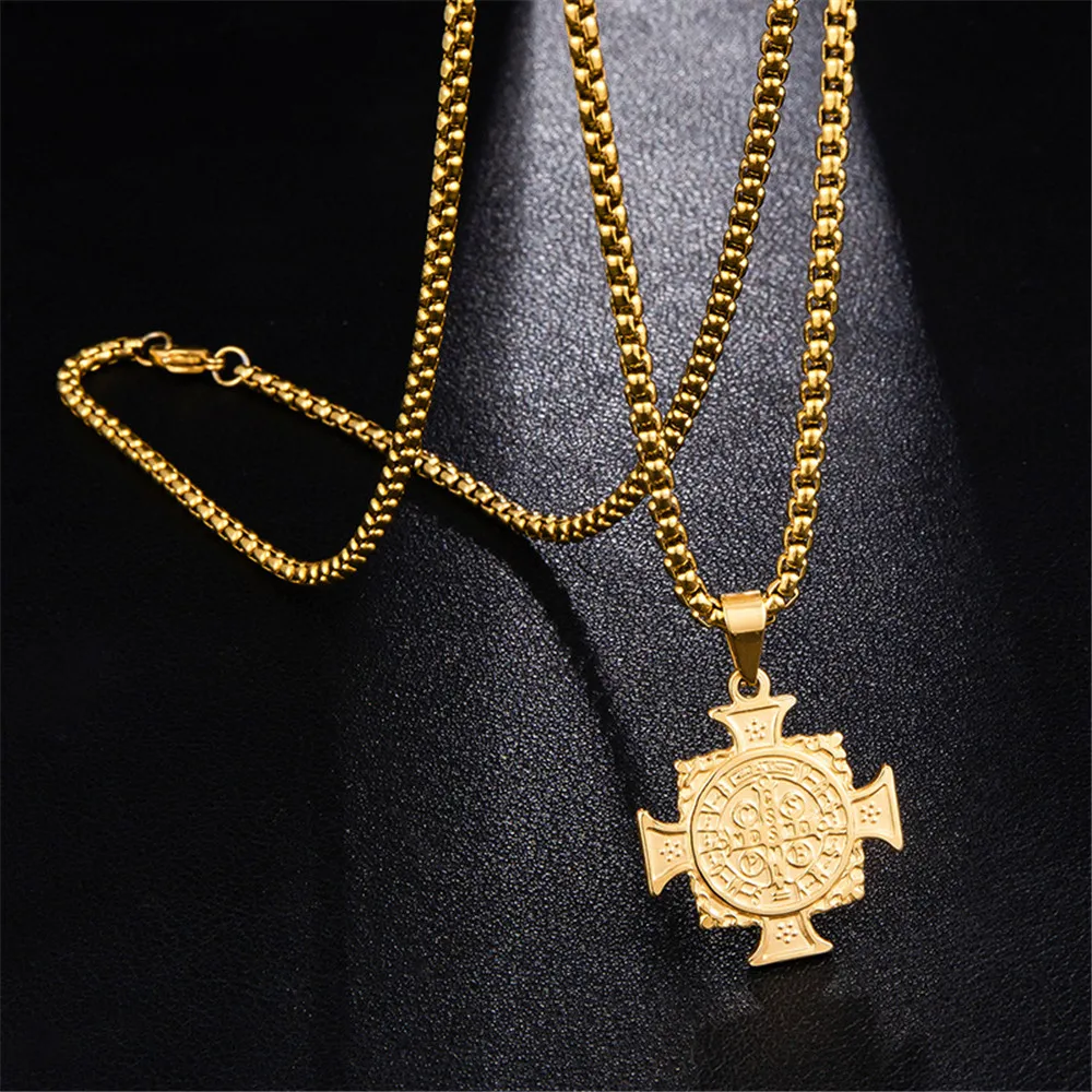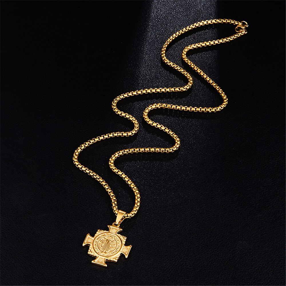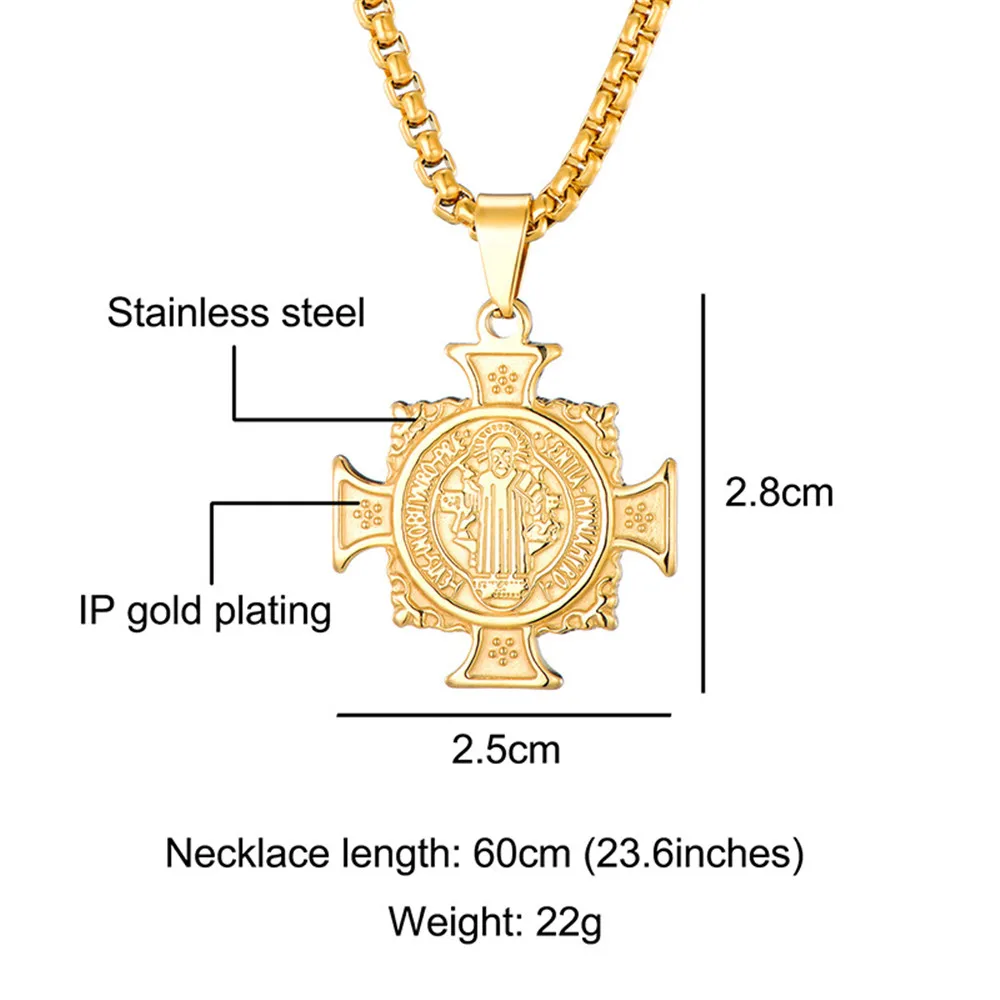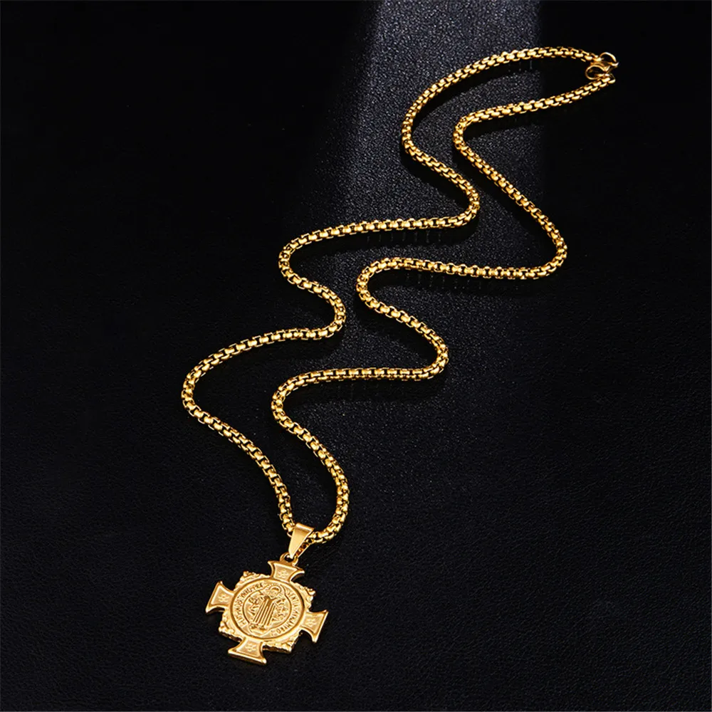 100% Stainless Steel Catholic Saint Benedict Necklace Pendant Cross Bible Jesus Exorcist Necklace