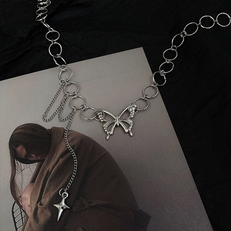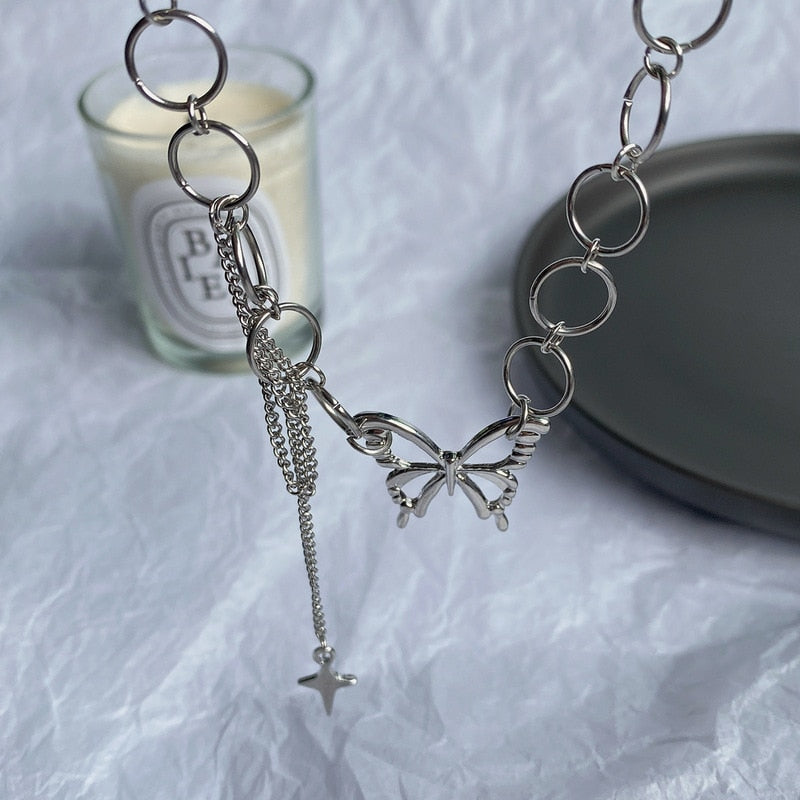 100% Titanium Steel Linked Chain Butterfly Cross Chokers Necklace for Women Ladies Pendant Necklaces 2021 Jewelry