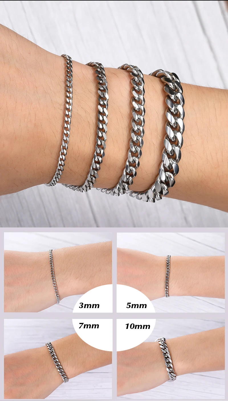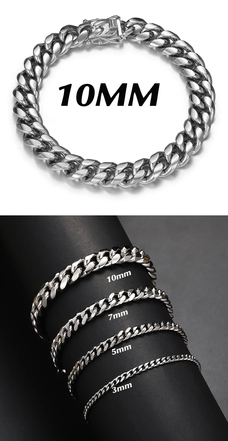 10mm 7mm Wide Classic Punk Cuban Link Stainless Steel Men's Bracelet Jewelry For Women Bracelets Chains Solid Metal