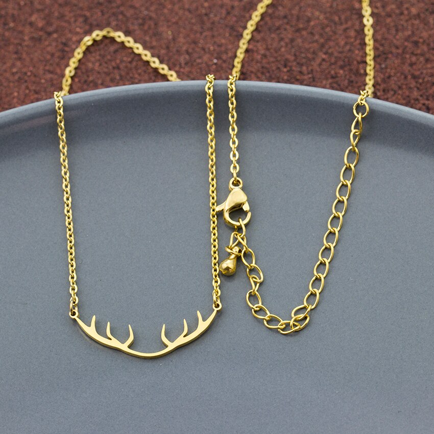 10pcs Christmas Gift Santa Deer Horn Antler Necklaces Pendants Women's Accessories Stainless Steel Jewelry Bff