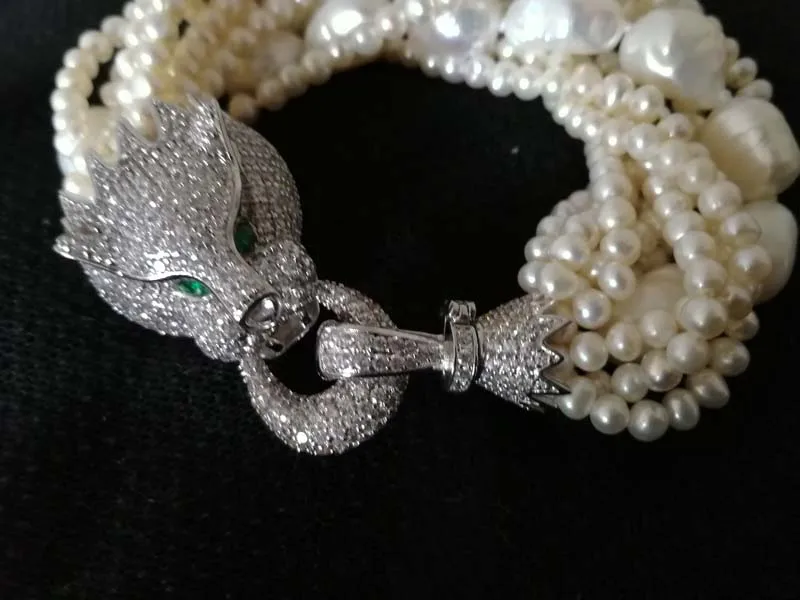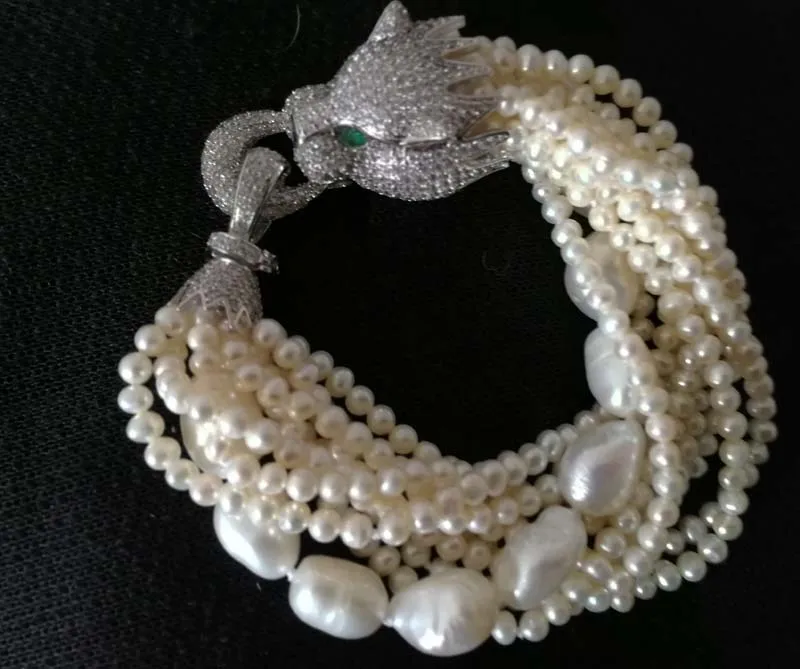 10rows pearl white near round baroque 3-5mm leopard clasp bracelet 8inch beads nature