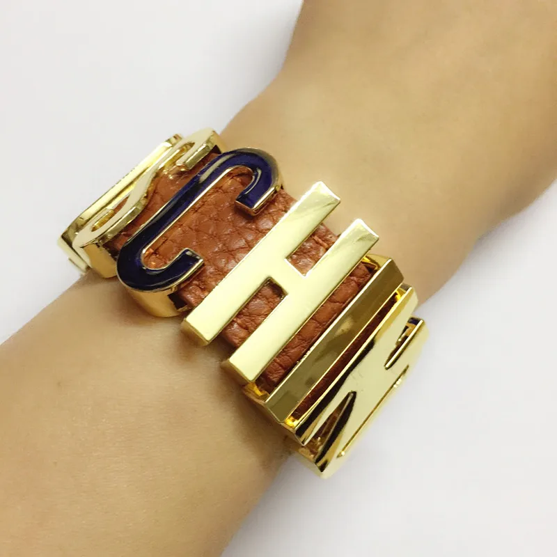 12 colors Cospl Handmade named Transparent innitial letter bangle ,luxury brand jewelry alphabet bracelets with PU leather
