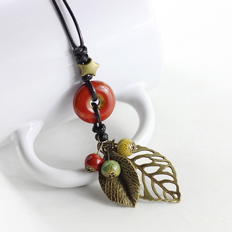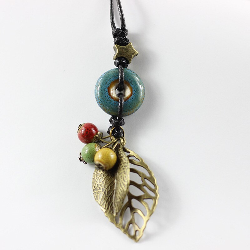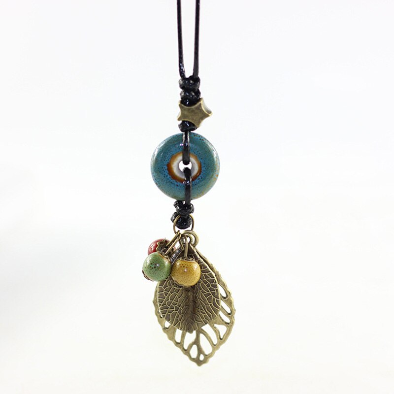 12 Pieces/Lot Round Star Ceramic Pendants Necklaces Hollow Leaf Long Weave Chain Pendant Statement Charm Choker Women Jewelry