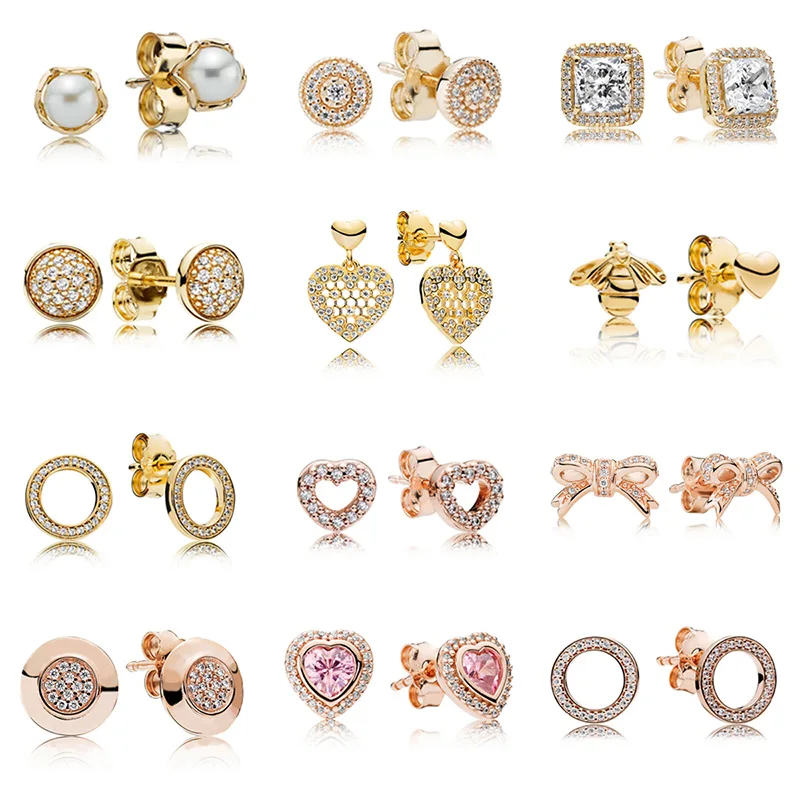 12 Style 925 Sterling Silver Rose Gold/Gold Earrings With Crystal Heart Star Flower Earrings For Women Wedding Jewelry