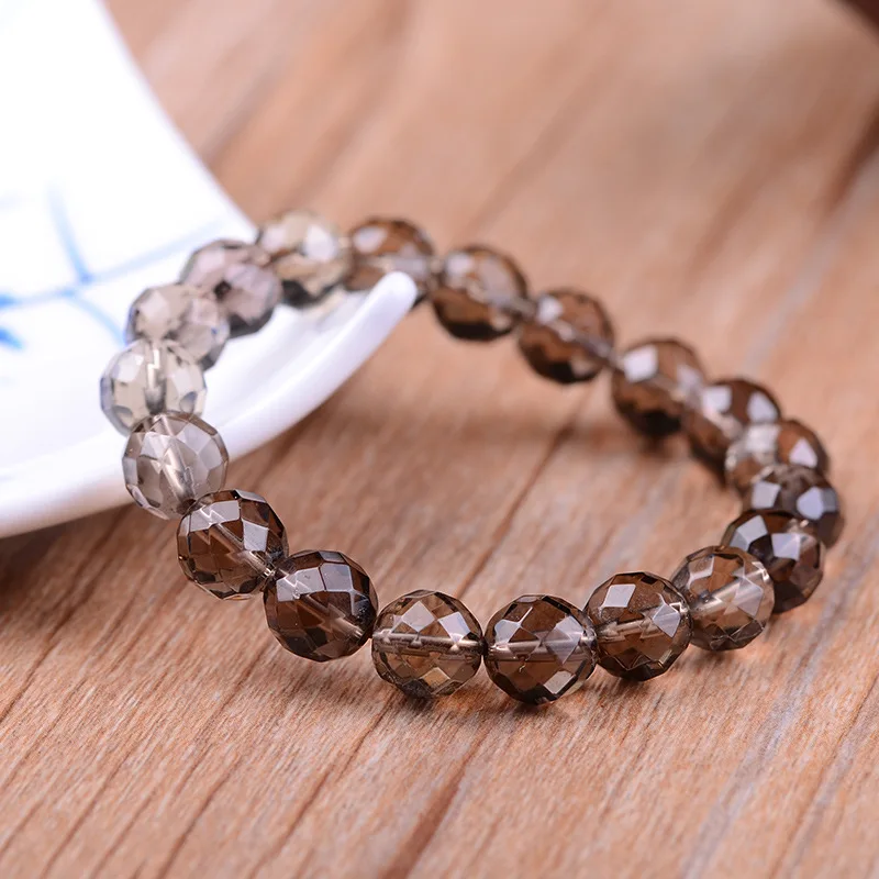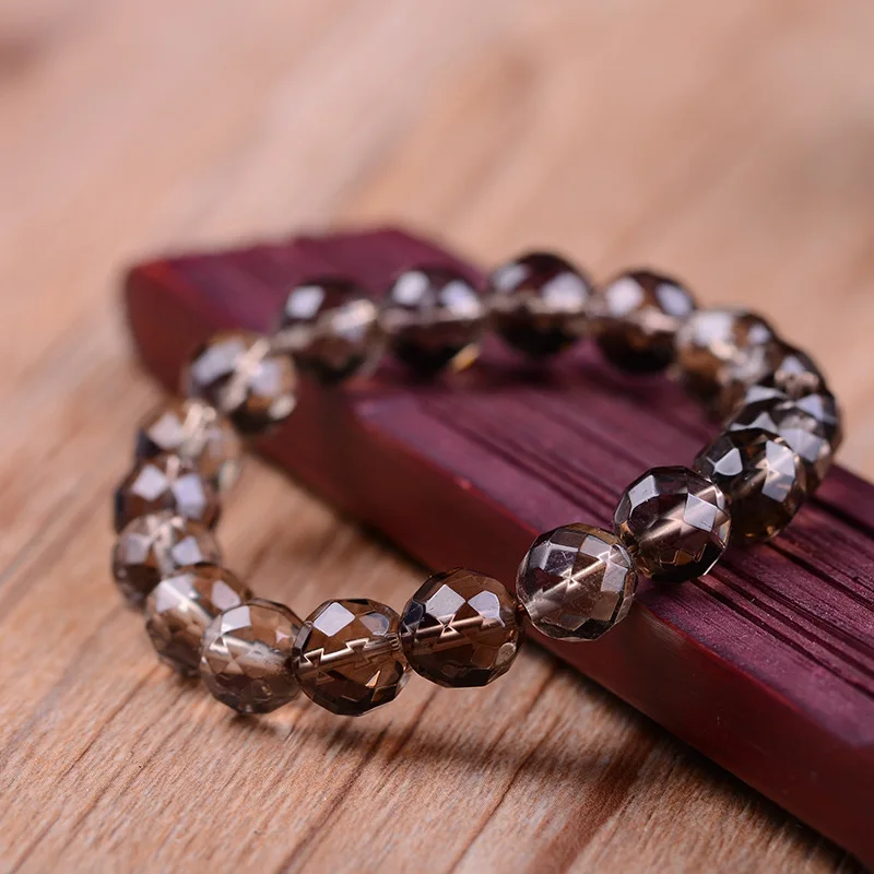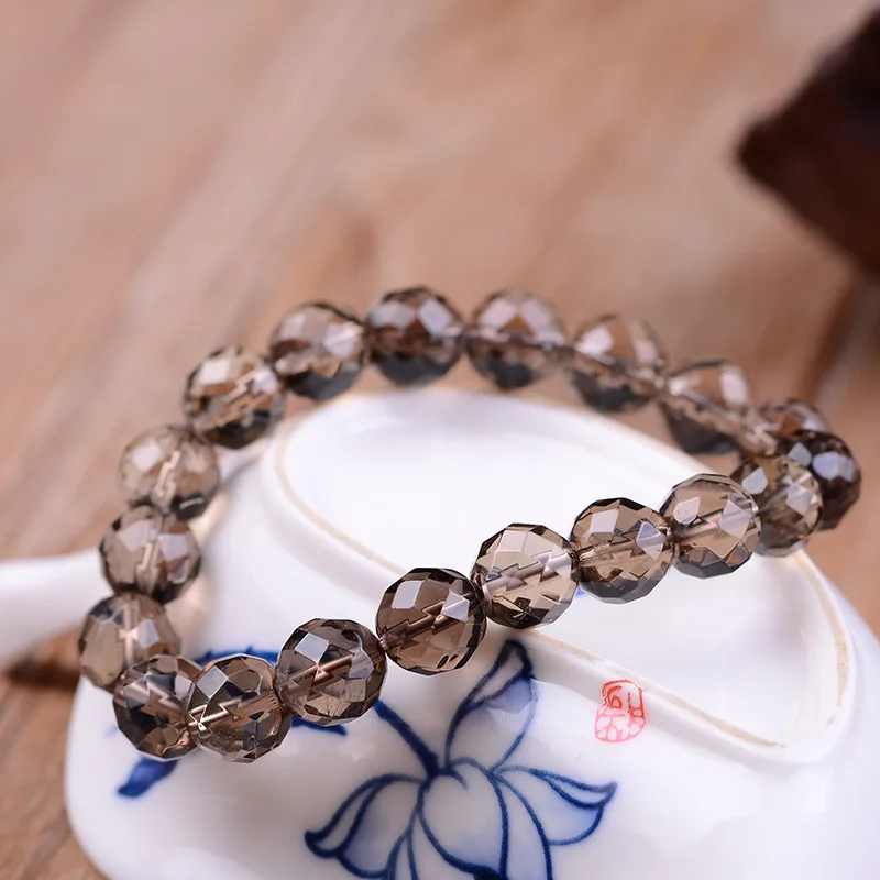 128 Moment Seasoned Millet Smoky Crystal Bracelet Section Natural Citrine String Tobacco Faceted Beads Crystal Bracelet 12mm